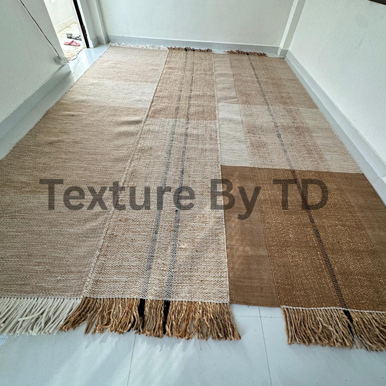 Add natural texture and timeless style to your home with this handwoven jute area rug. Crafted from eco-friendly natural jute fibers, this rug features a beige base accented with a rich patched pattern, creating a perfect balance of warmth and modern geometry.