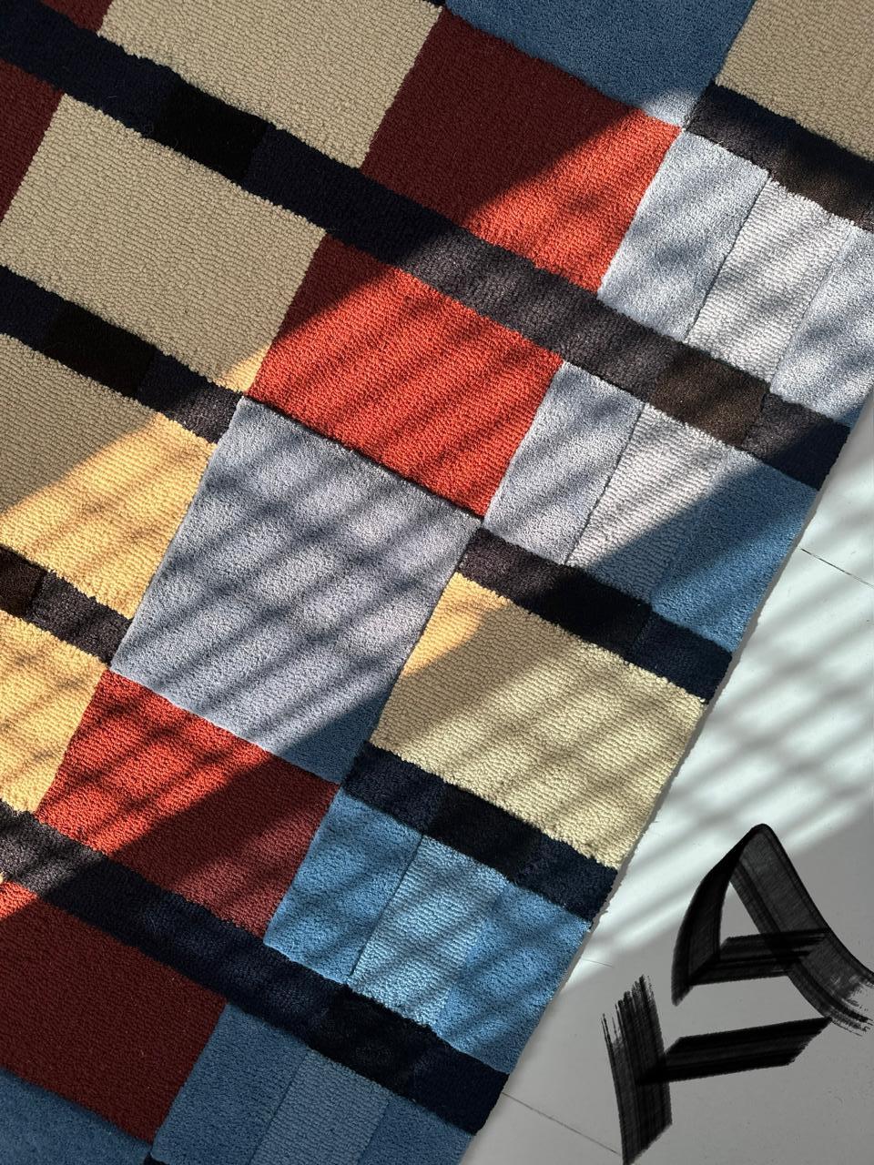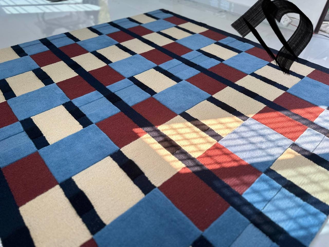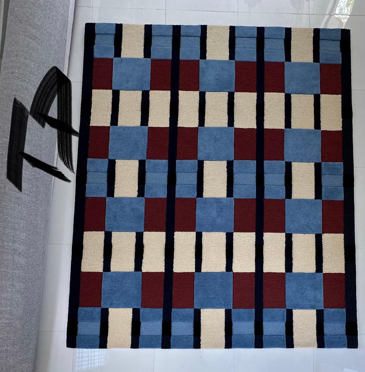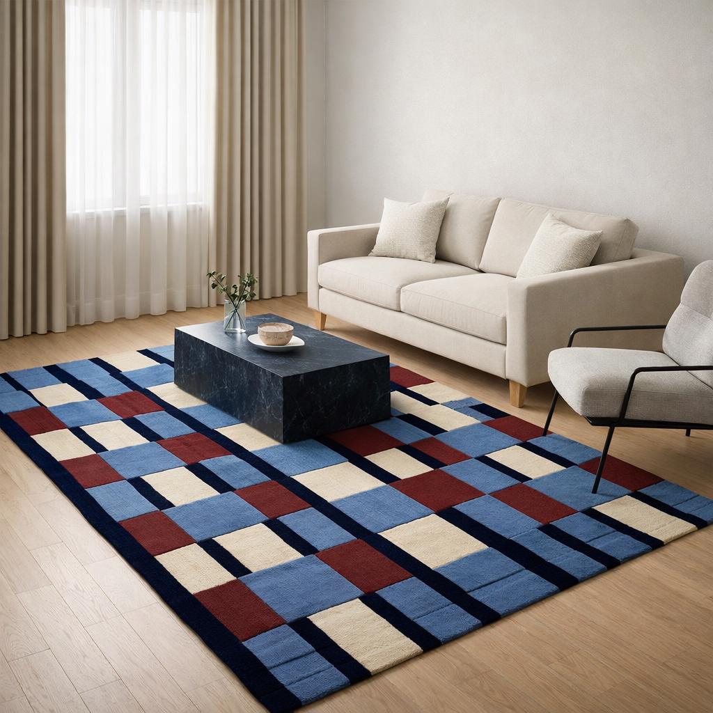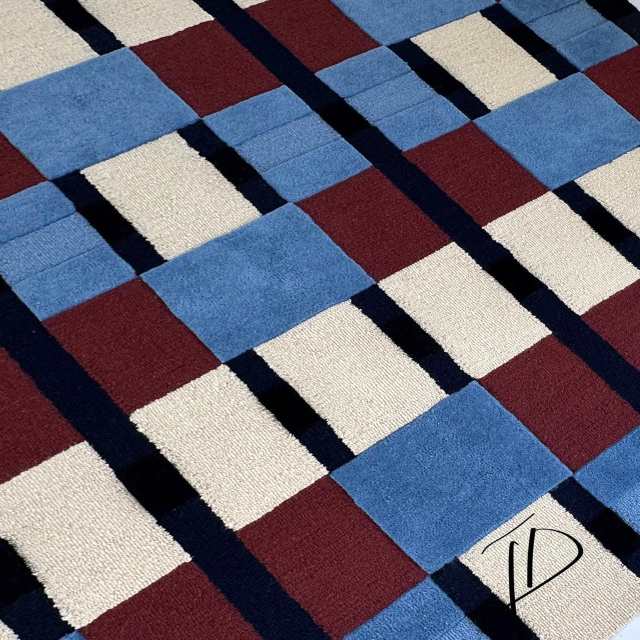 Add a bold yet elegant statement to your space with this modern geometric area rug, featuring a striking pattern of blue, burgundy, cream, and black blocks. Designed to complement contemporary, modern, and minimalist interiors, this rug brings warmth, texture, and visual interest to any room.