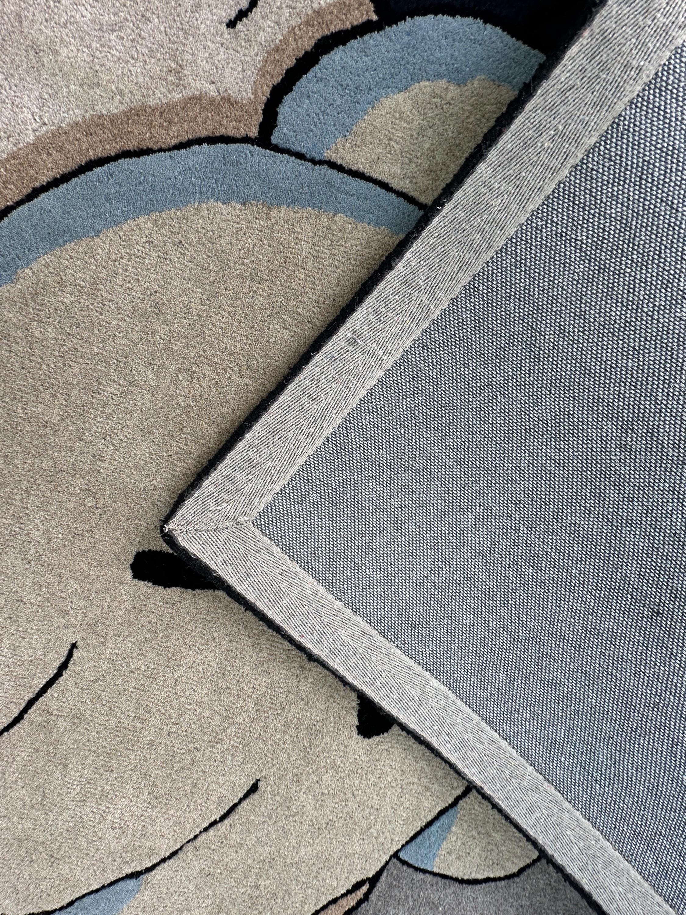 Crafted by skilled artisans, this rug combines creative design with premium comfort. The neutral tones of beige, grey, black, and soft blue make it versatile while still standing out as a true conversation piece.
