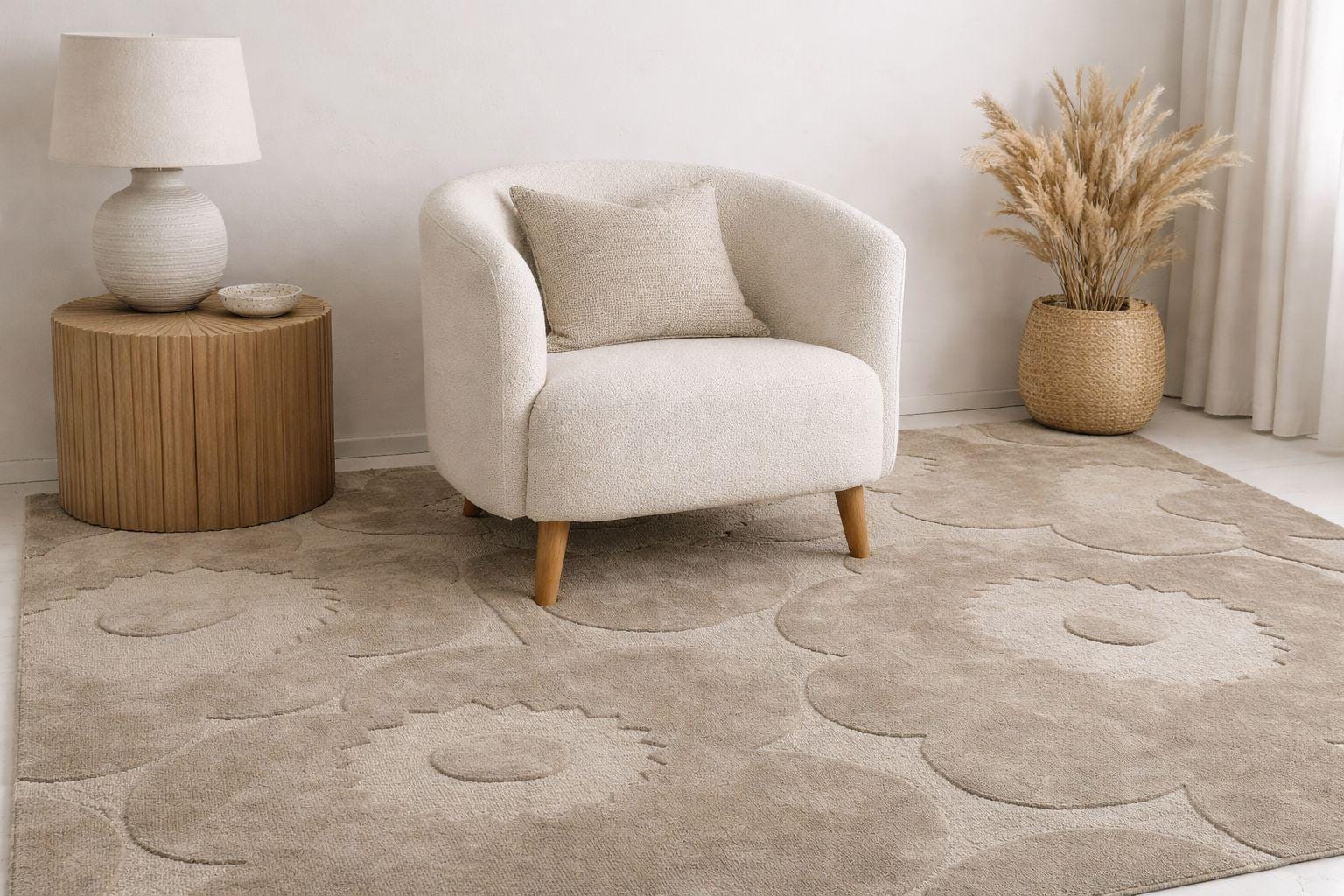 Elevate your space with this Hand Tufted Modern Light Beige Area Rug, a perfect blend of minimalist elegance and artistic design. Featuring an abstract floral and geometric pattern in soft, light beige tones, this designer wool carpet adds warmth and texture to any room. Whether you're decorating a living room, bedroom, office, or dining area, this rug seamlessly complements contemporary, modern, and minimalist interiors, creating a calm and stylish atmosphere.