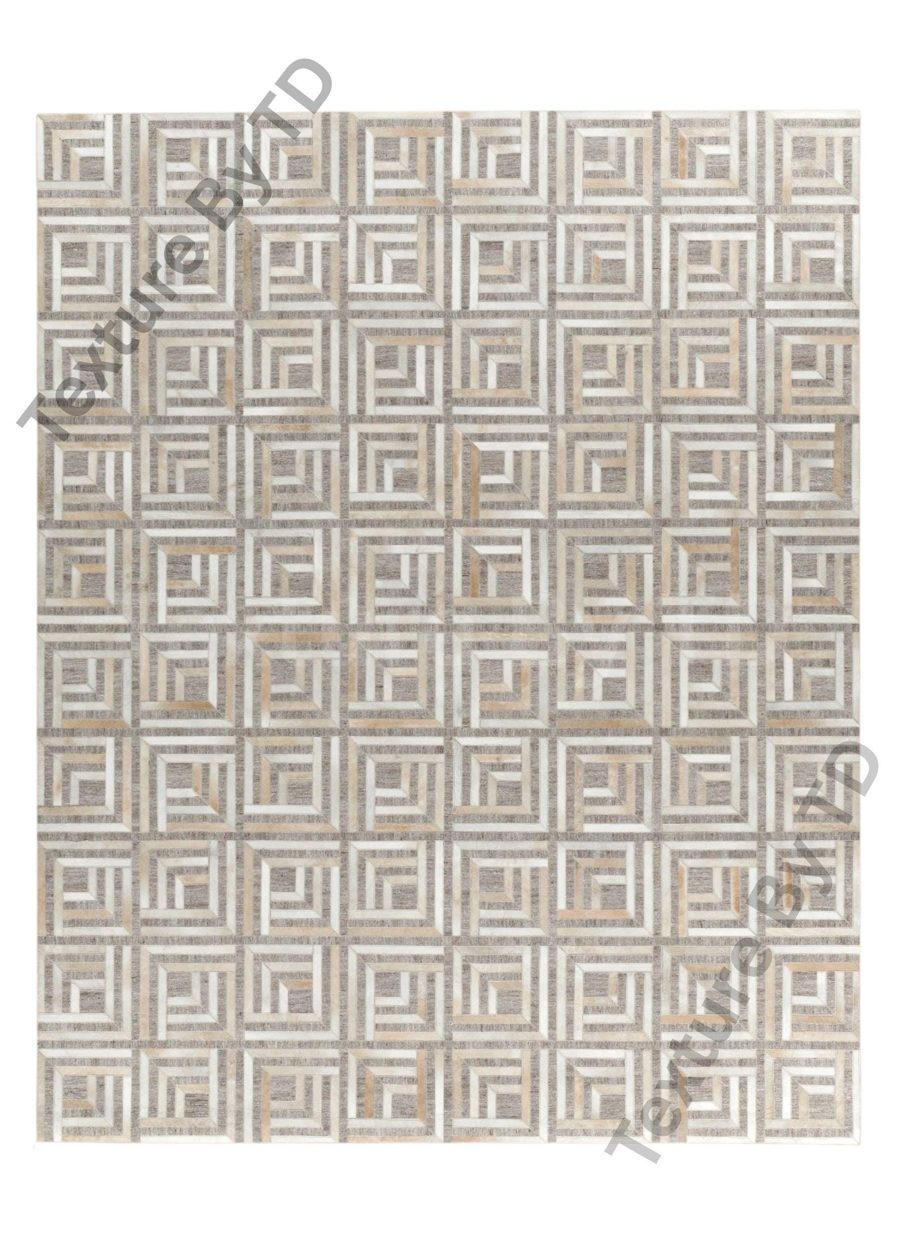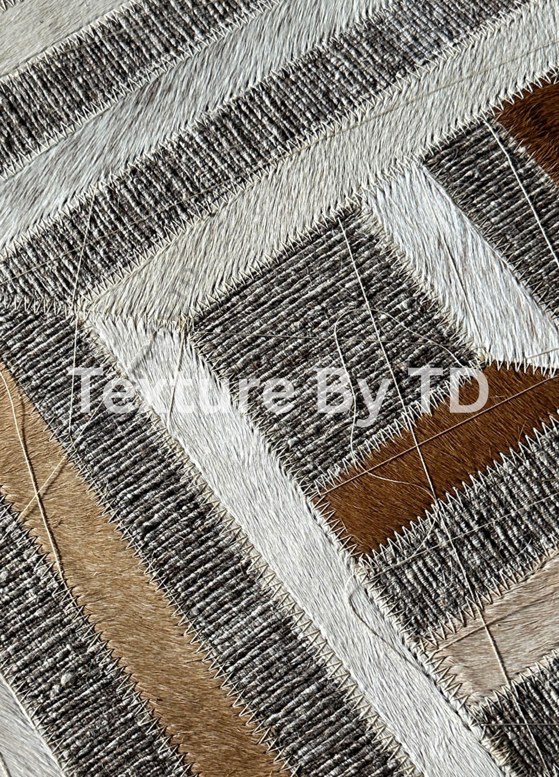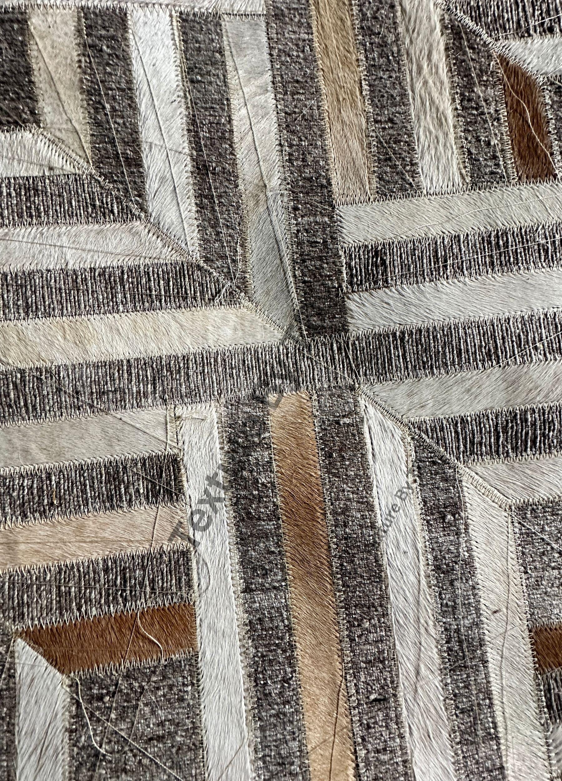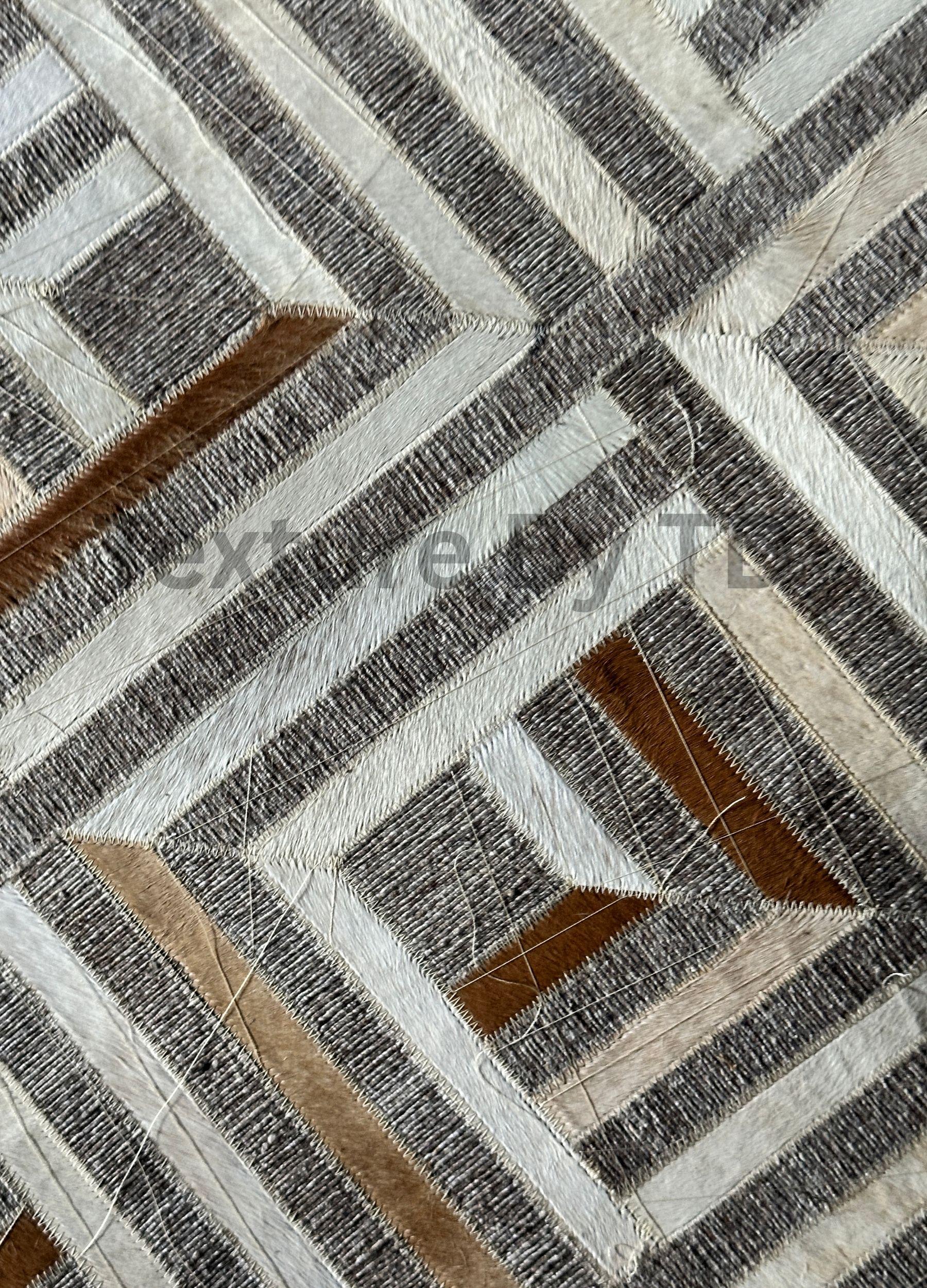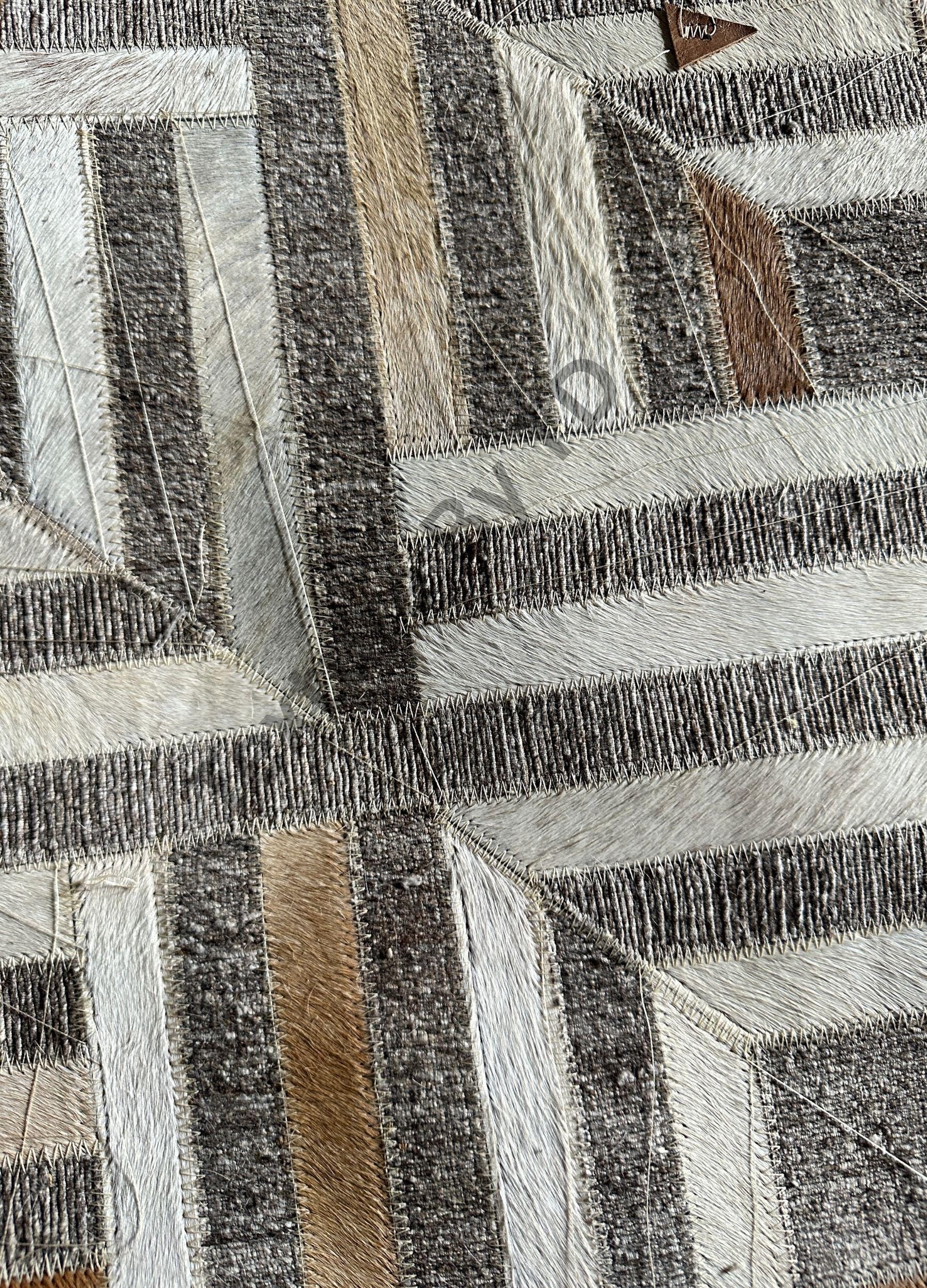 Crafted by artisans from segments of un-dyed hair on hide, carefully selected for their quality and luster, our walcott rug features a hand-sewn geometric motif. Unique colouring and markings in the hides accentuate the rug’s intricate design, adding one-of-a-kind character.