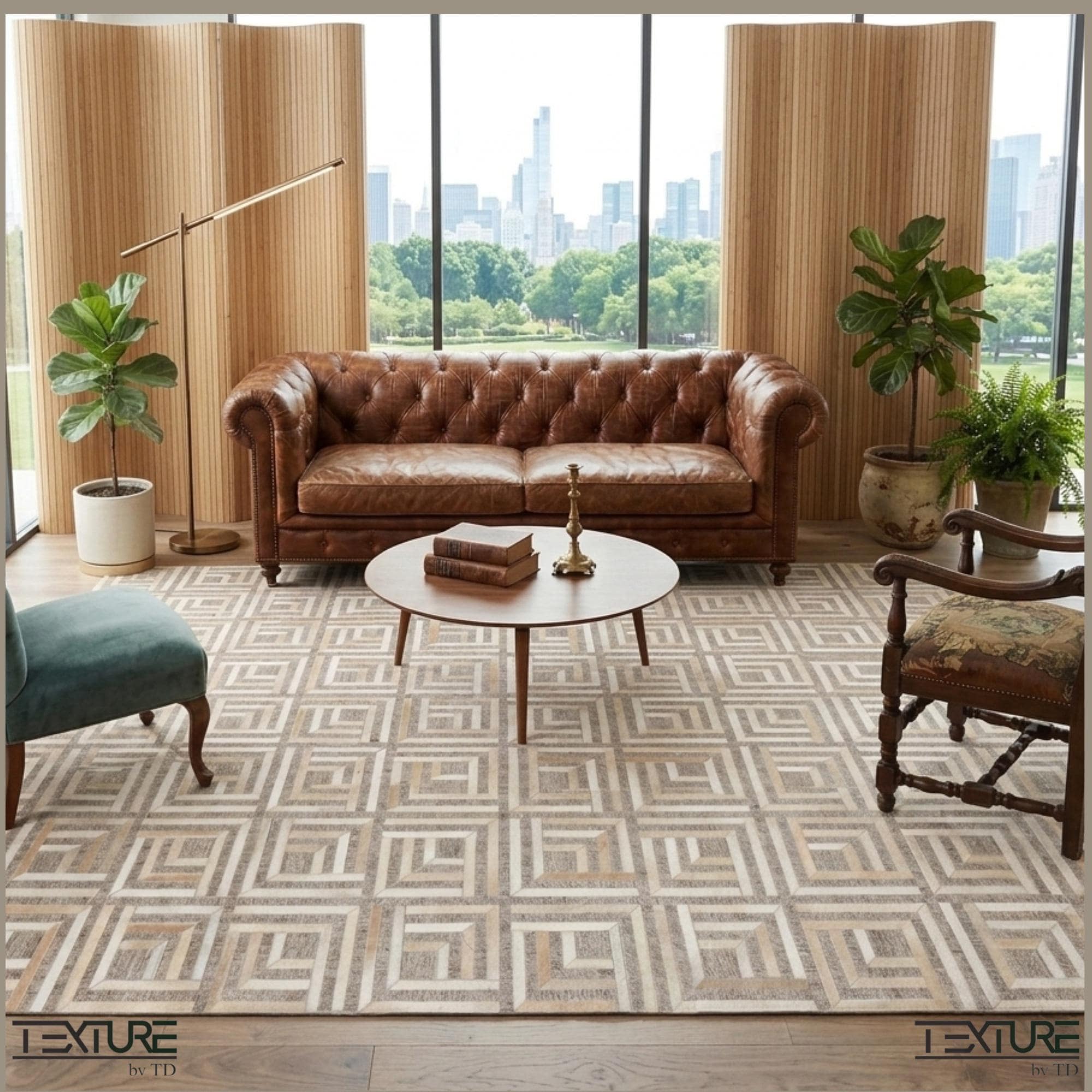 Transform your living space with our Natural Leather Rug, a stunning handcrafted geometric patchwork hair-on hide floor covering that combines modern design with natural elegance. Crafted from carefully selected, un-dyed hair-on-hide leather, each rug boasts unique coloring and markings, making every piece a one-of-a-kind statement for your home. Perfect for adding warmth, texture, and sophistication to your living room, bedroom, or home office, this modern textured area rug effortlessly elevates any decor style.