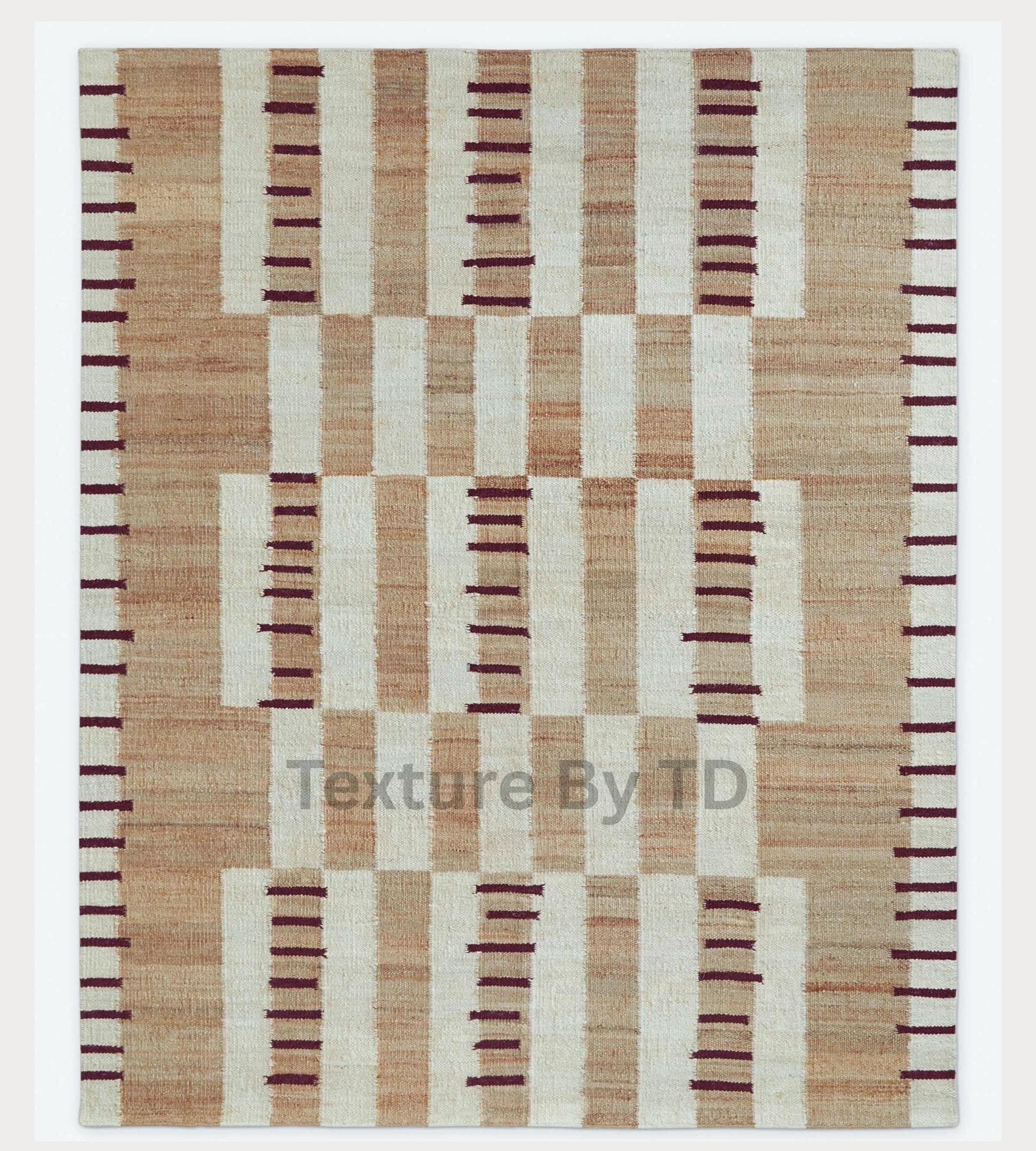 Add natural texture and timeless style to your home with this handwoven jute area rug. Crafted from eco-friendly natural jute fibers rug, this rug features a beige base accented with a rich patched pattern, creating a perfect balance of warmth and modern geometry.