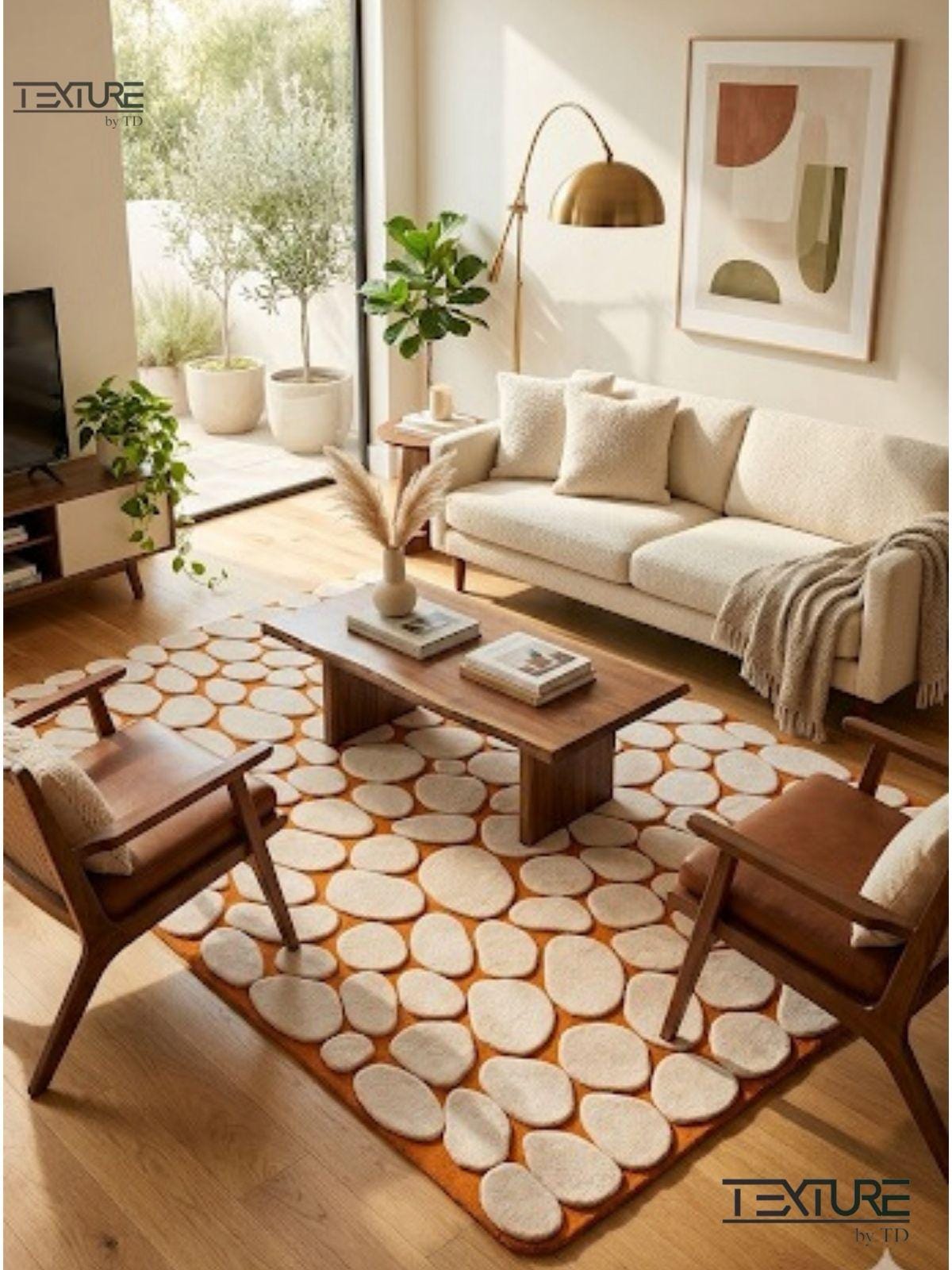 Bring a unique designer touch to your home with this beautiful Pebble Stone Pattern Hand Tufted Rug. Inspired by natural river stones, this rug features soft raised pebble shapes that create a modern 3D texture and a relaxing natural aesthetic.