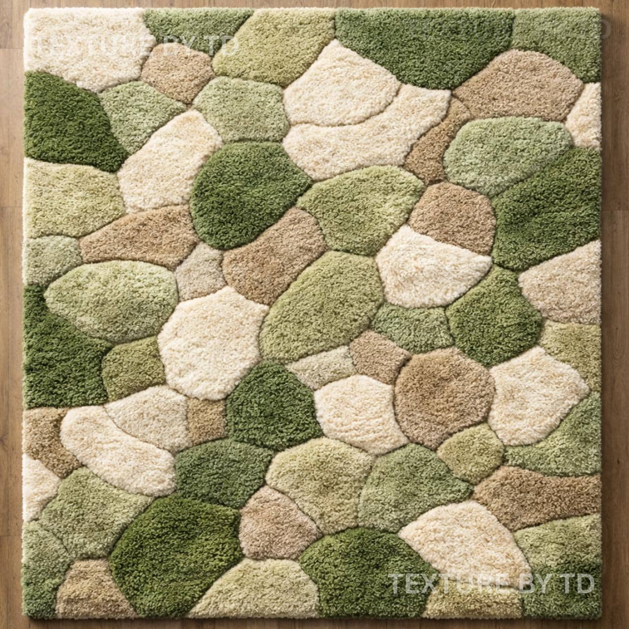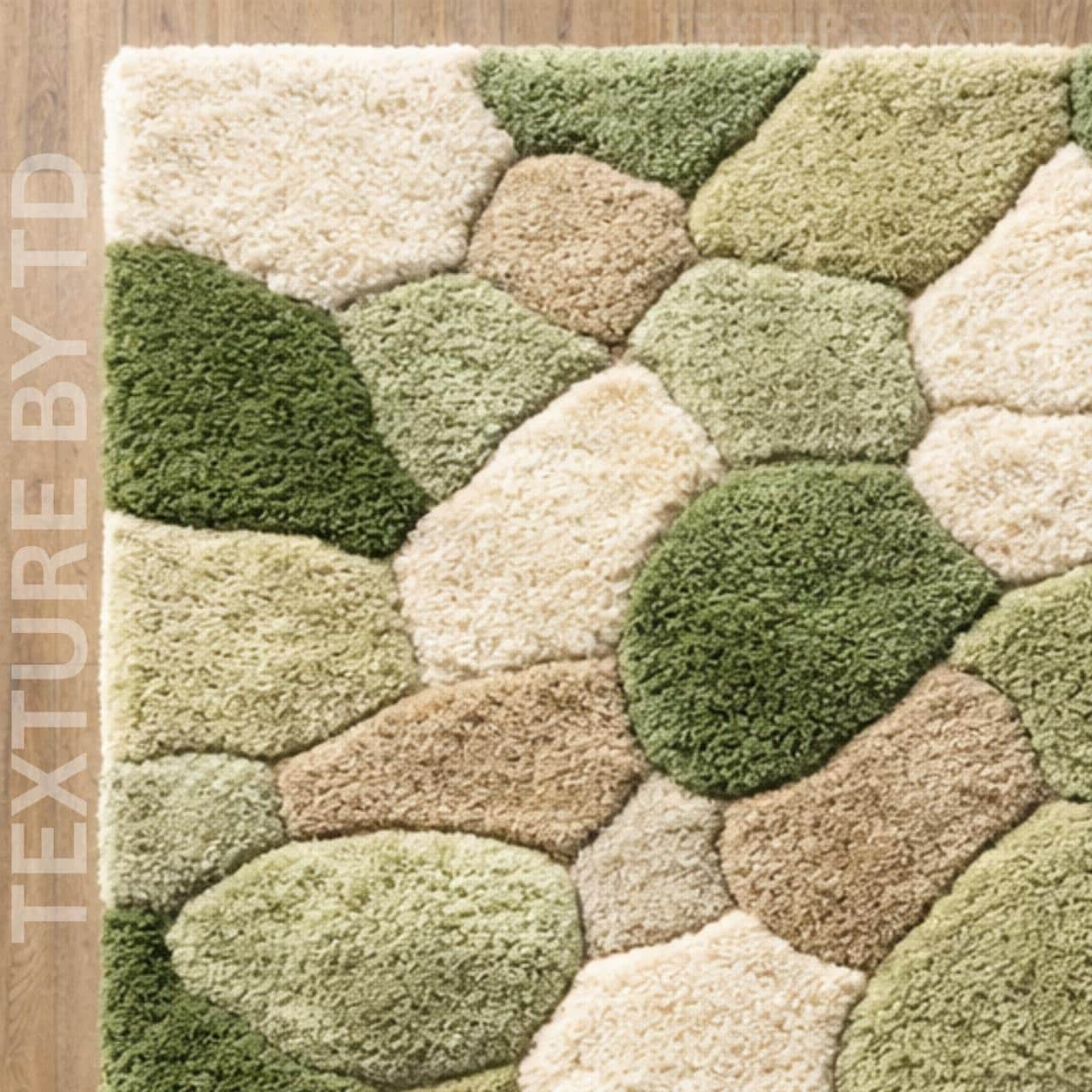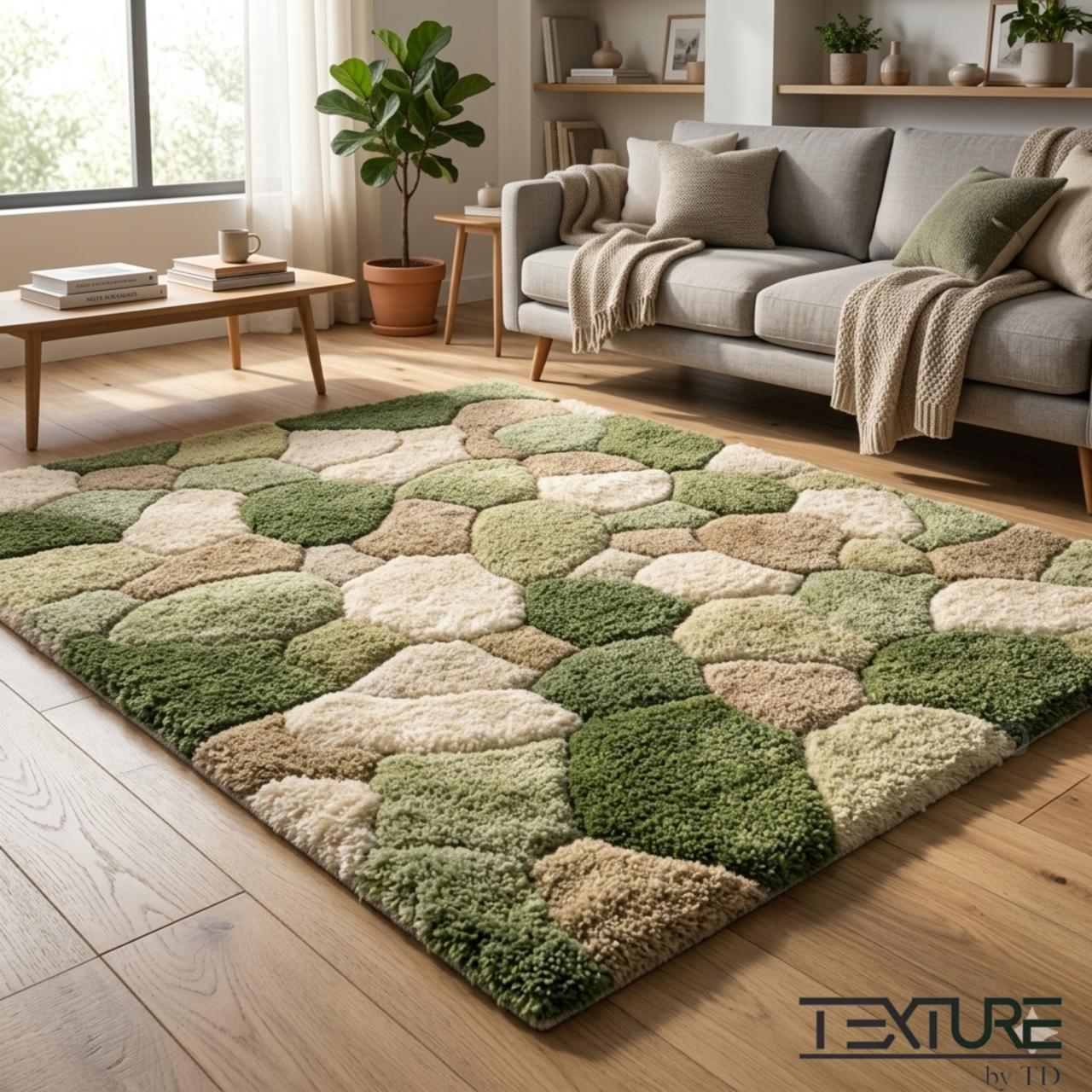 Elevate your living space with this stunning Hand Tufted Moss Green and Beige Rug, featuring a unique pebble stone pattern and 3D textured design. Crafted with expert care, this designer rug seamlessly blends modern sophistication with cozy natural aesthetics, making it the perfect statement piece for any living room, bedroom, or entryway. The soothing moss green and neutral beige tones evoke tranquility, adding a calming ambiance to your home decor.