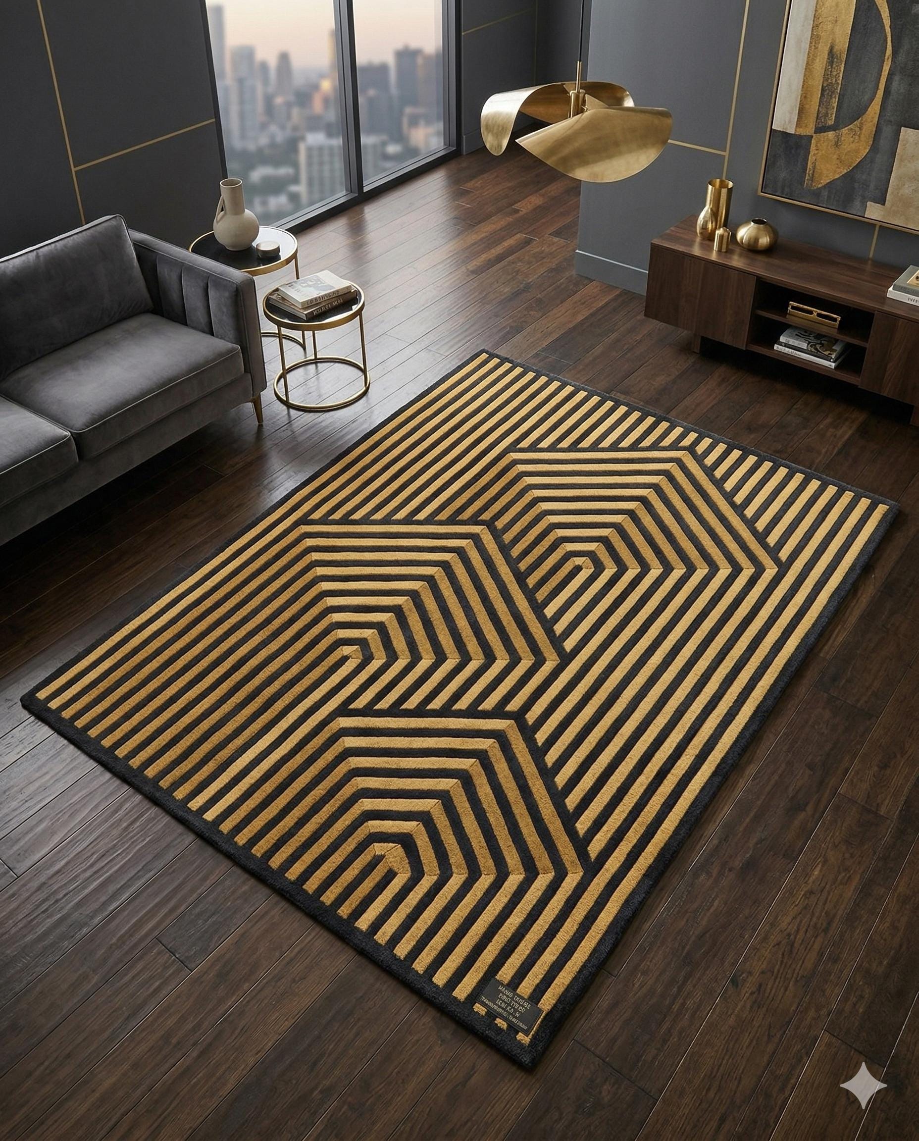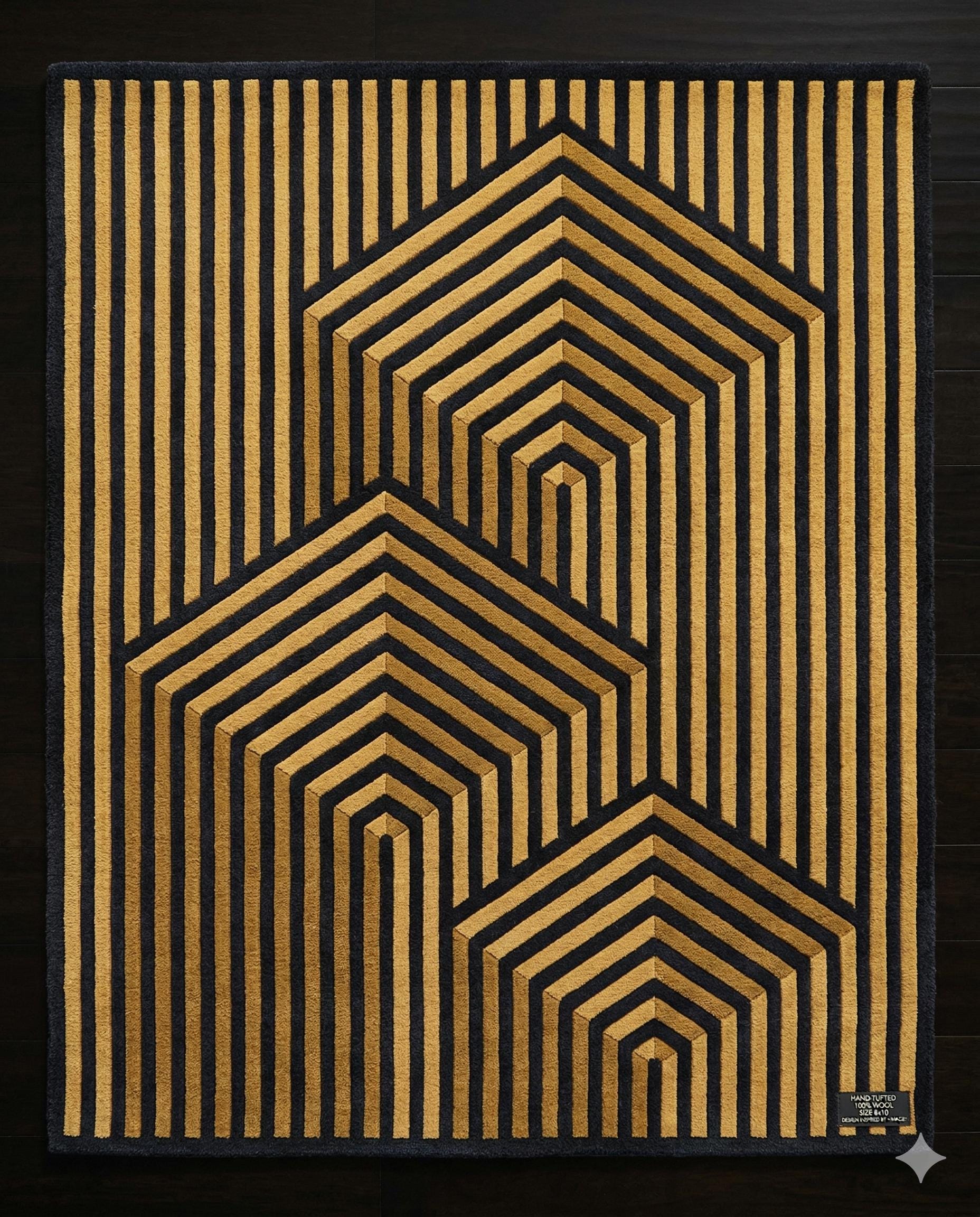 Transform your living space with this stunning Gold 3D Diamond Rug, a modern statement piece that effortlessly combines artistic design with luxurious comfort. Crafted with meticulous care, this hand tufted wool rug features a captivating geometric pattern that creates a striking 3D diamond effect, adding depth and sophistication to any room. Its rich gold tones and intricate design make it a versatile addition that complements a variety of decor styles, from contemporary to eclectic.