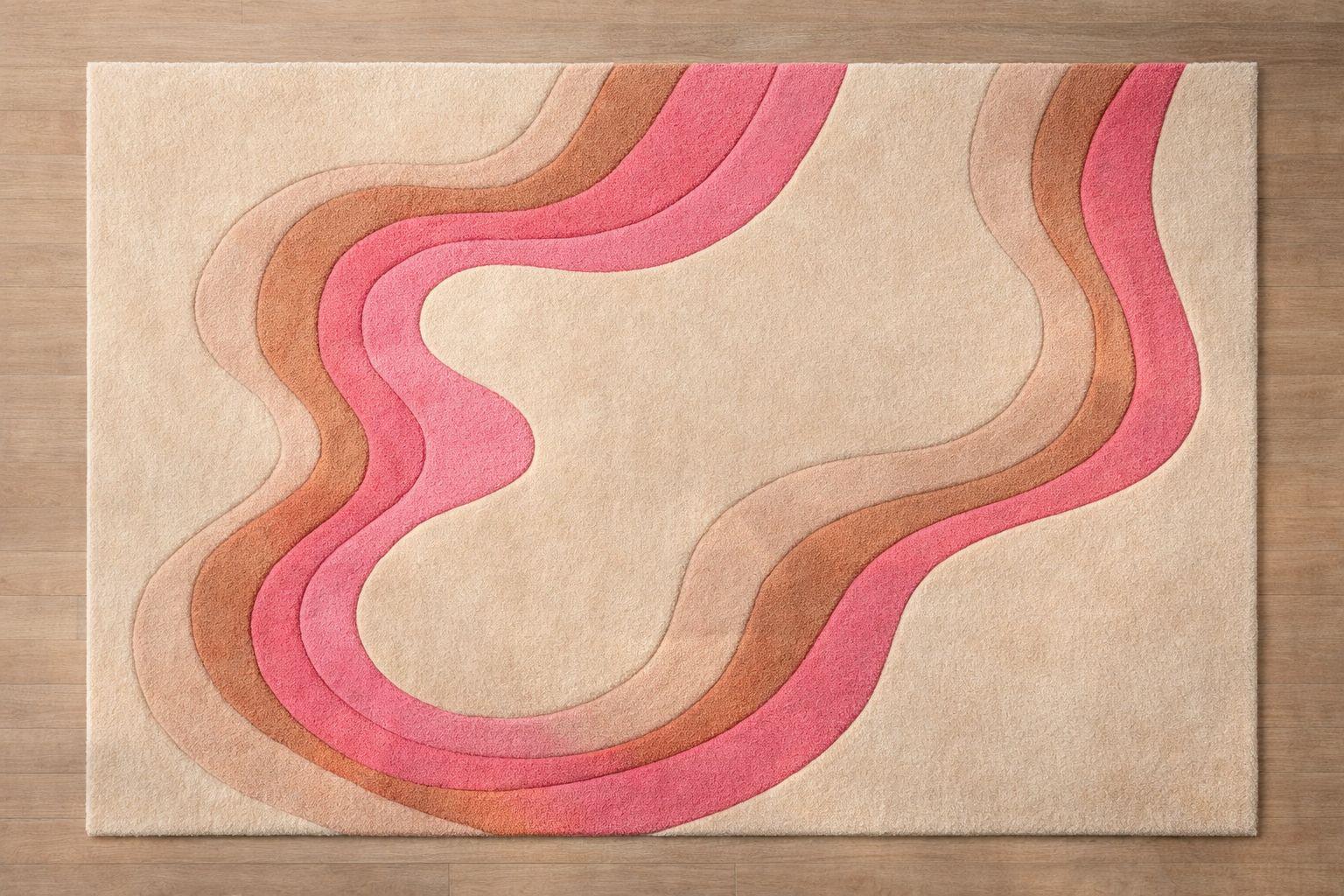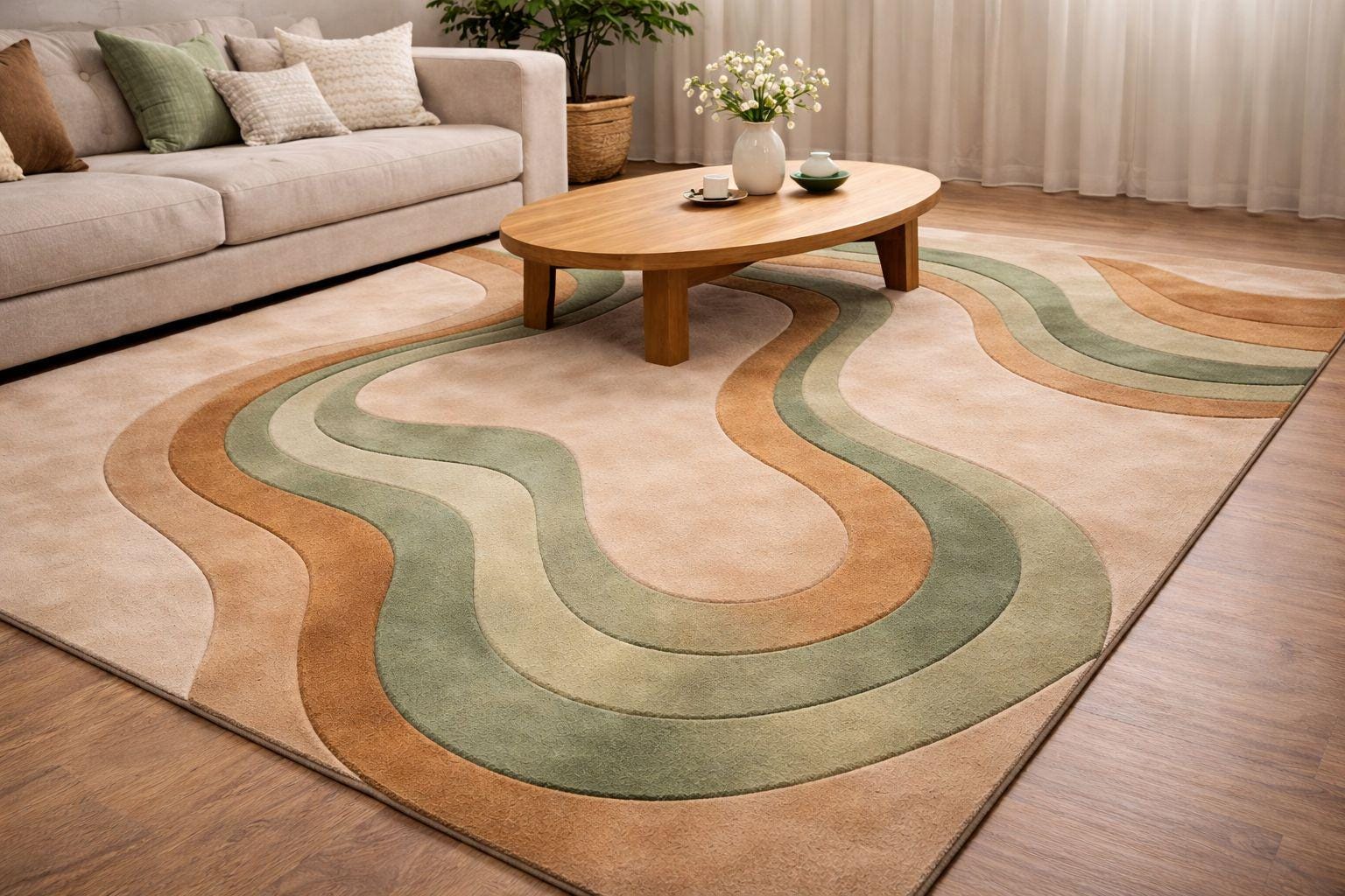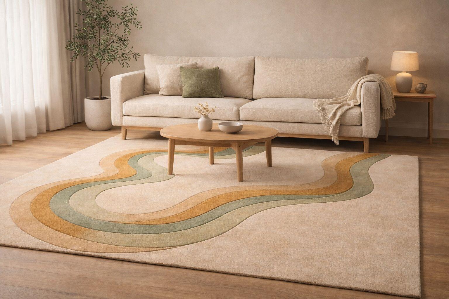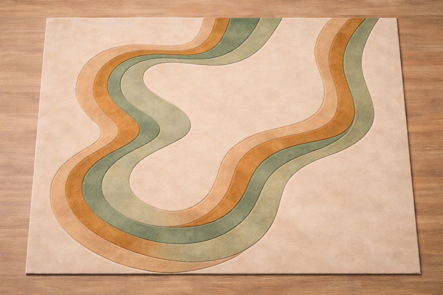 Hand Tufted Abstract Rug – Ecru Beige with Modern Wavy Design | Premium Quality | Free Shipping