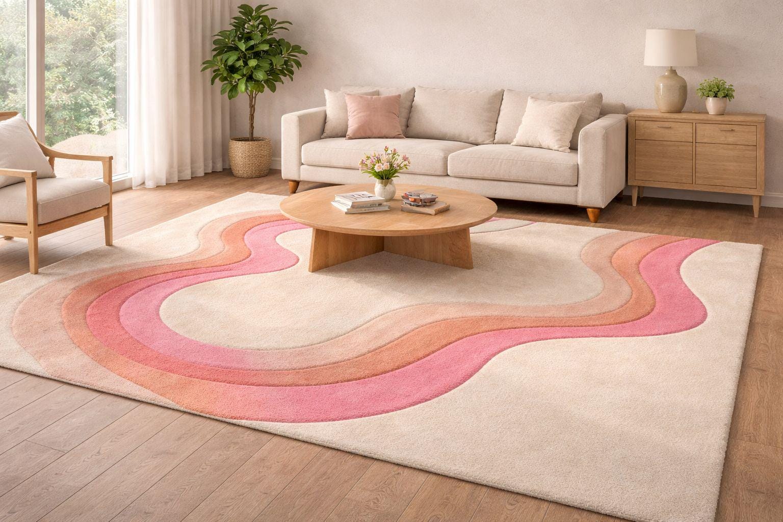 Each piece is carefully made by skilled artisans, ensuring a soft, durable, and high-quality finish that enhances both comfort and style. The organic wavy pattern creates a sense of movement, making it perfect for contemporary, minimalist, boho, or mid-century interiors.