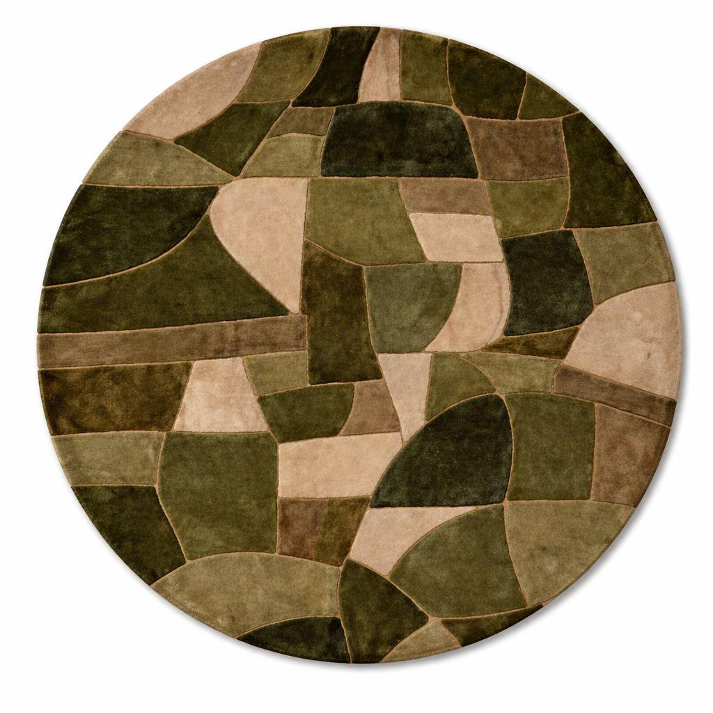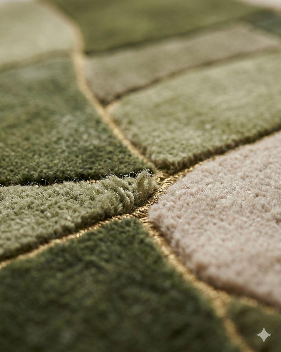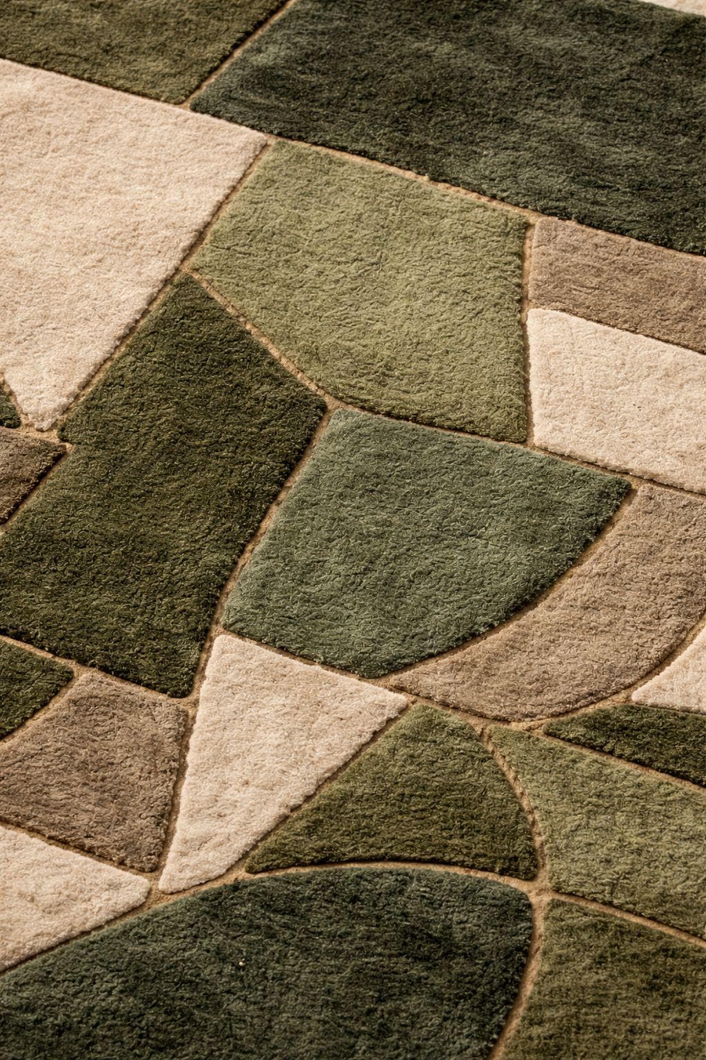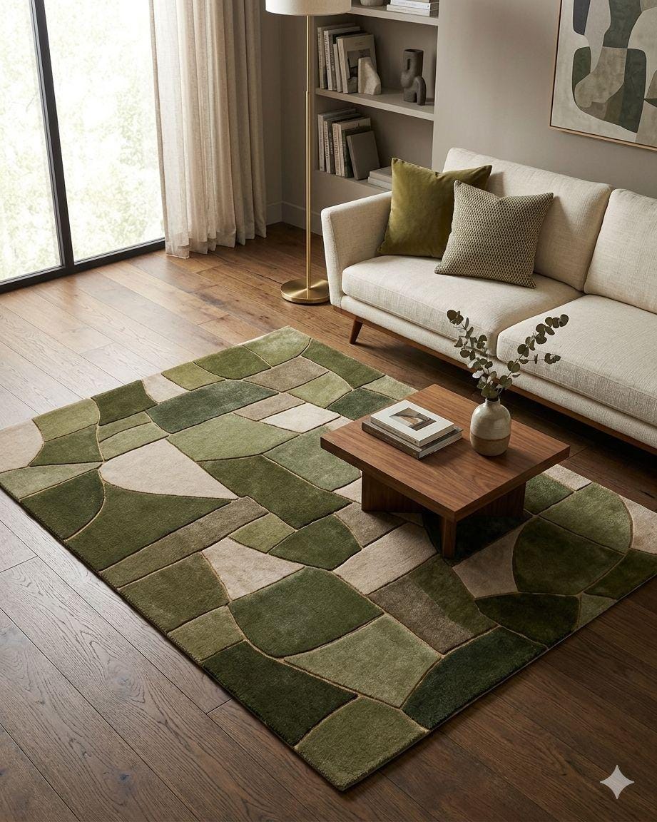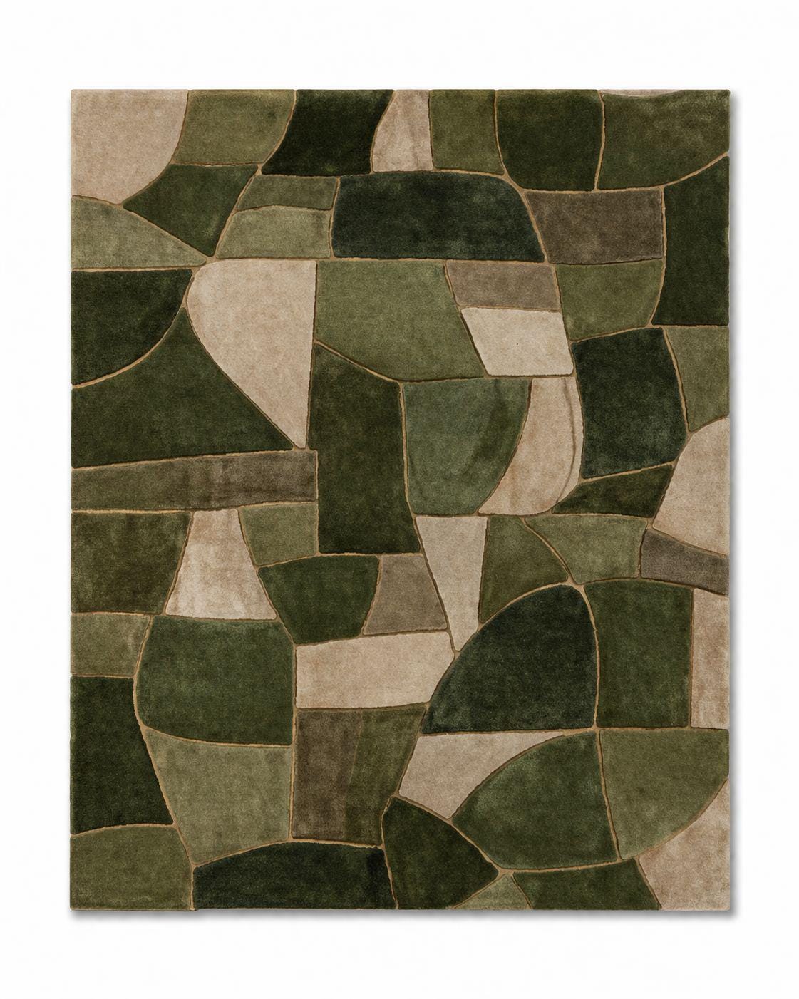 Modern Moss Green Abstract Hand-Tufted Wool Rug | Geometric Multicolor Organic Living Room Statement Carpet