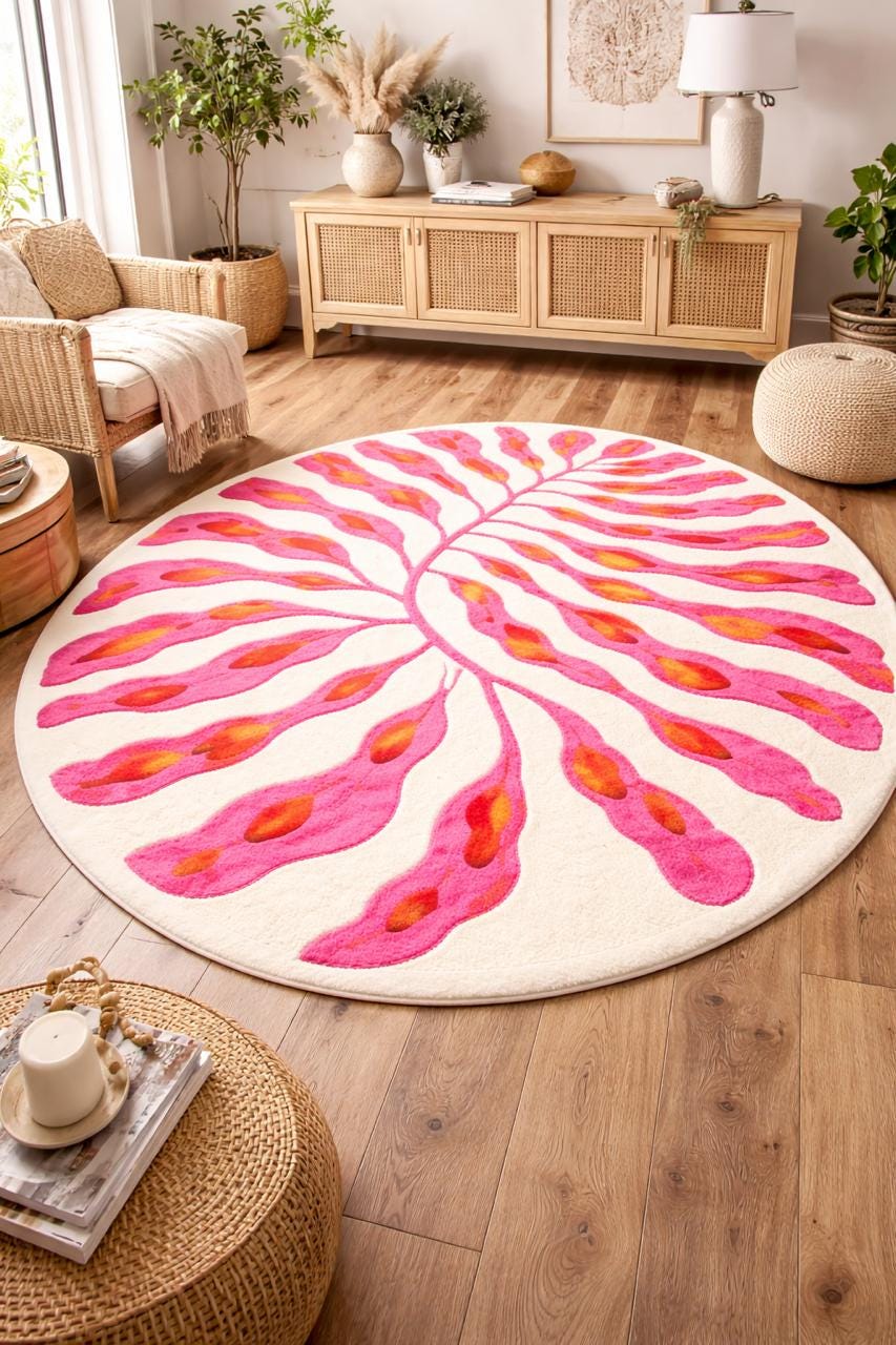 Dimensions and care instructions are included to ensure your rug stays beautiful for years to come. Whether you're looking to add a pop of color or create a cozy, inviting atmosphere, this unique home decor piece is sure to make a statement.
