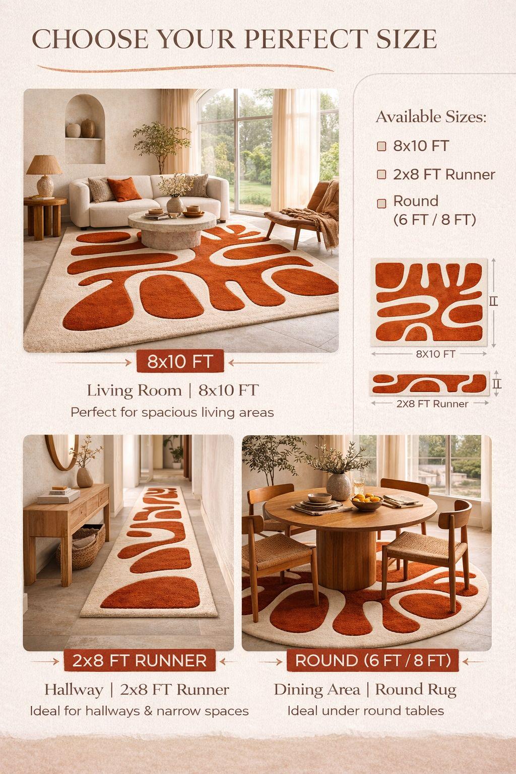 • 8×10 ft – Perfect for living rooms