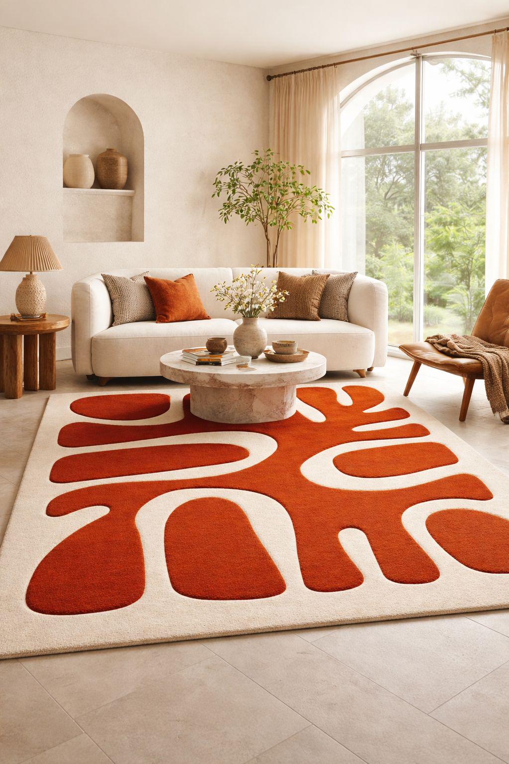 Transform your space with this modern abstract hand-tufted rug, designed to bring warmth, texture, and a luxury feel into your home.