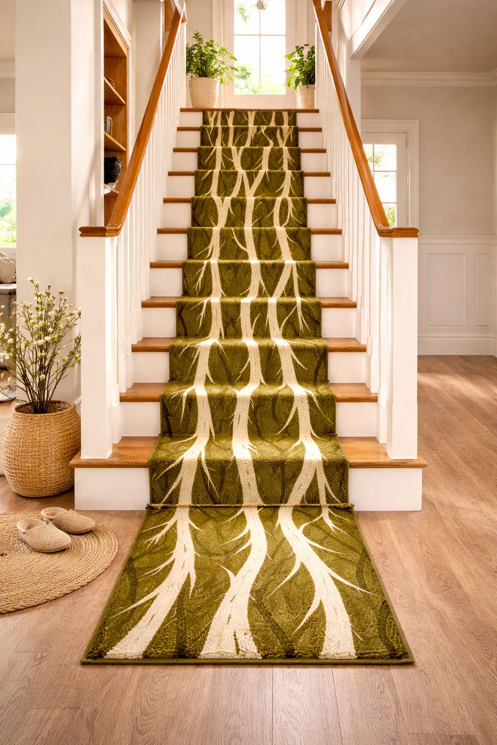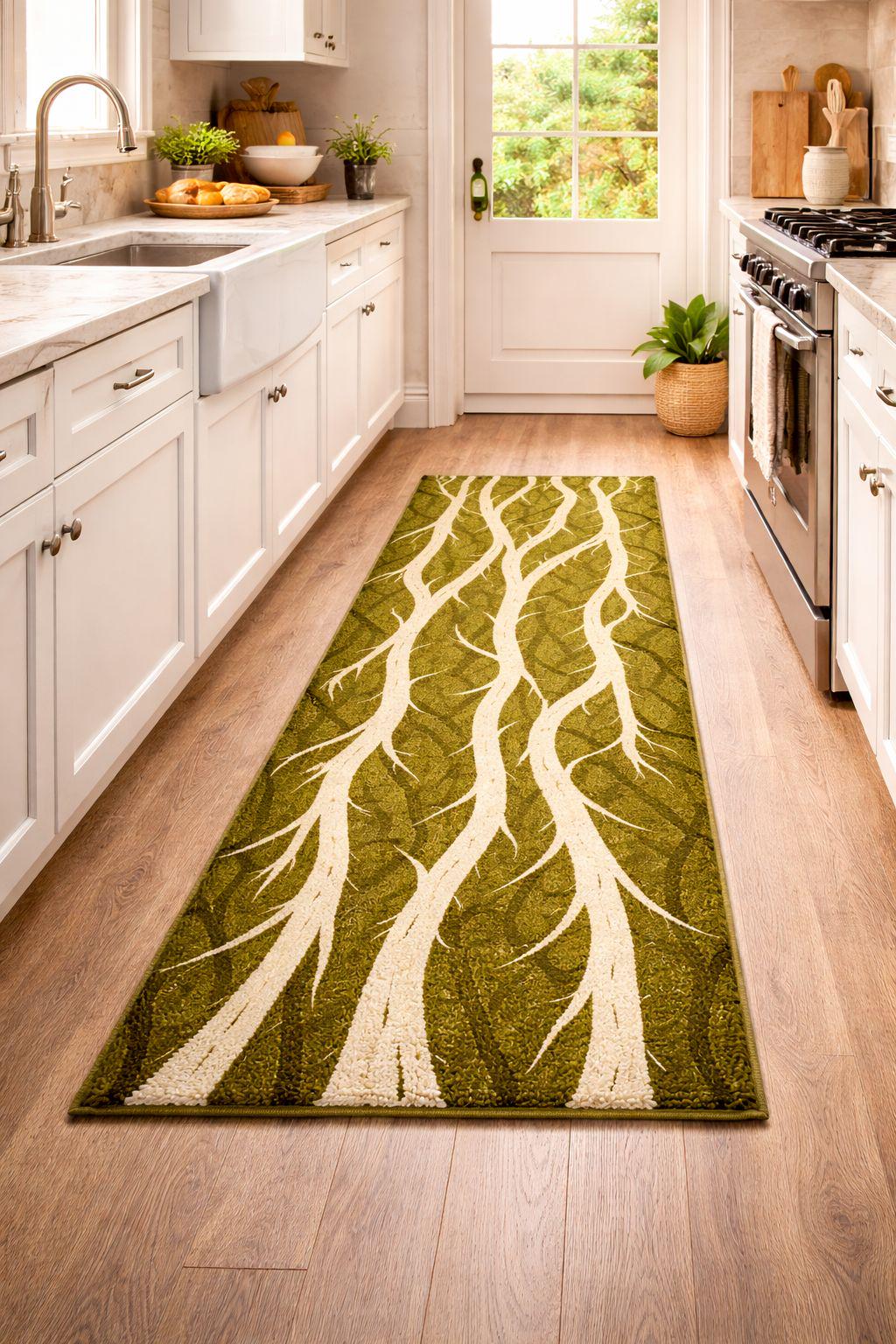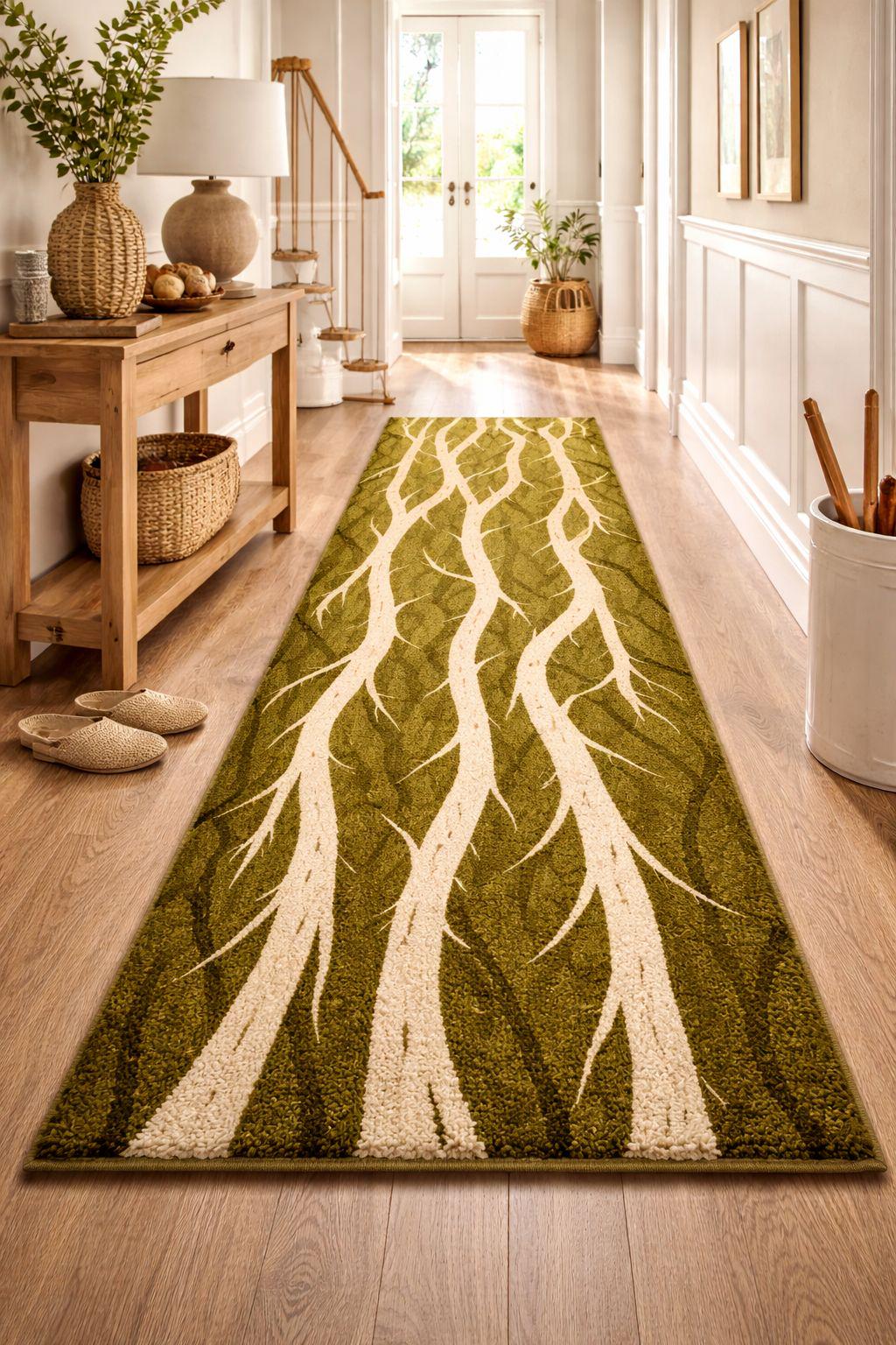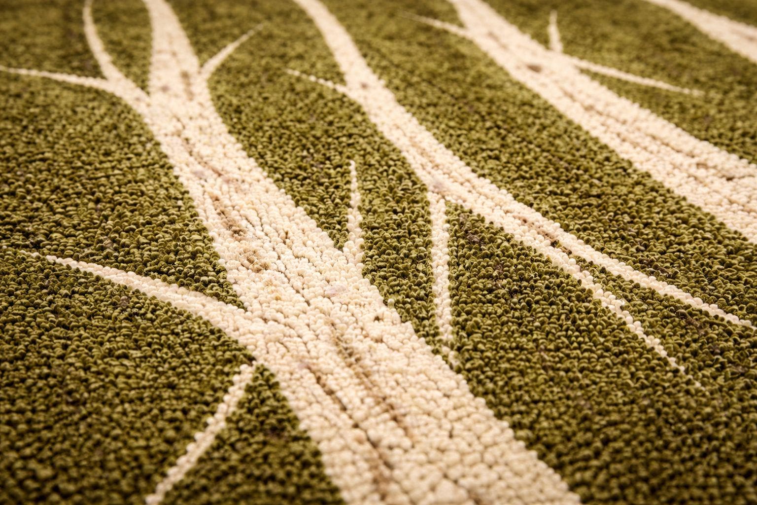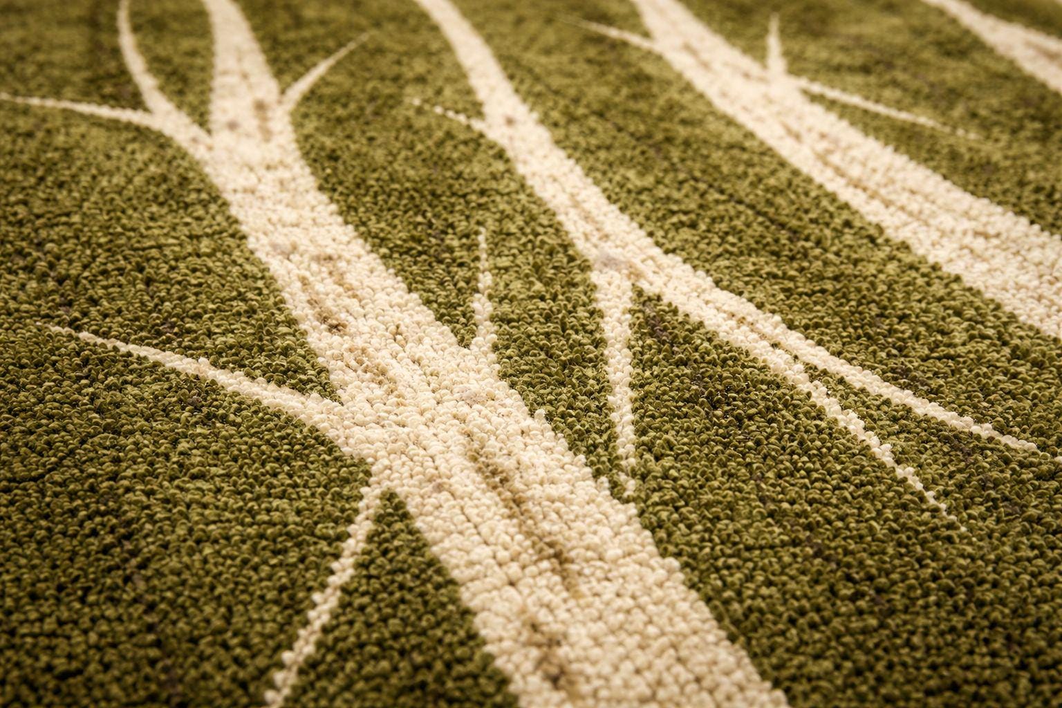 Inspired by serene woodland landscapes, this moss green forest rug transforms your space into a peaceful retreat. The elegant tree pattern adds depth and texture, creating a warm, inviting atmosphere in any room.