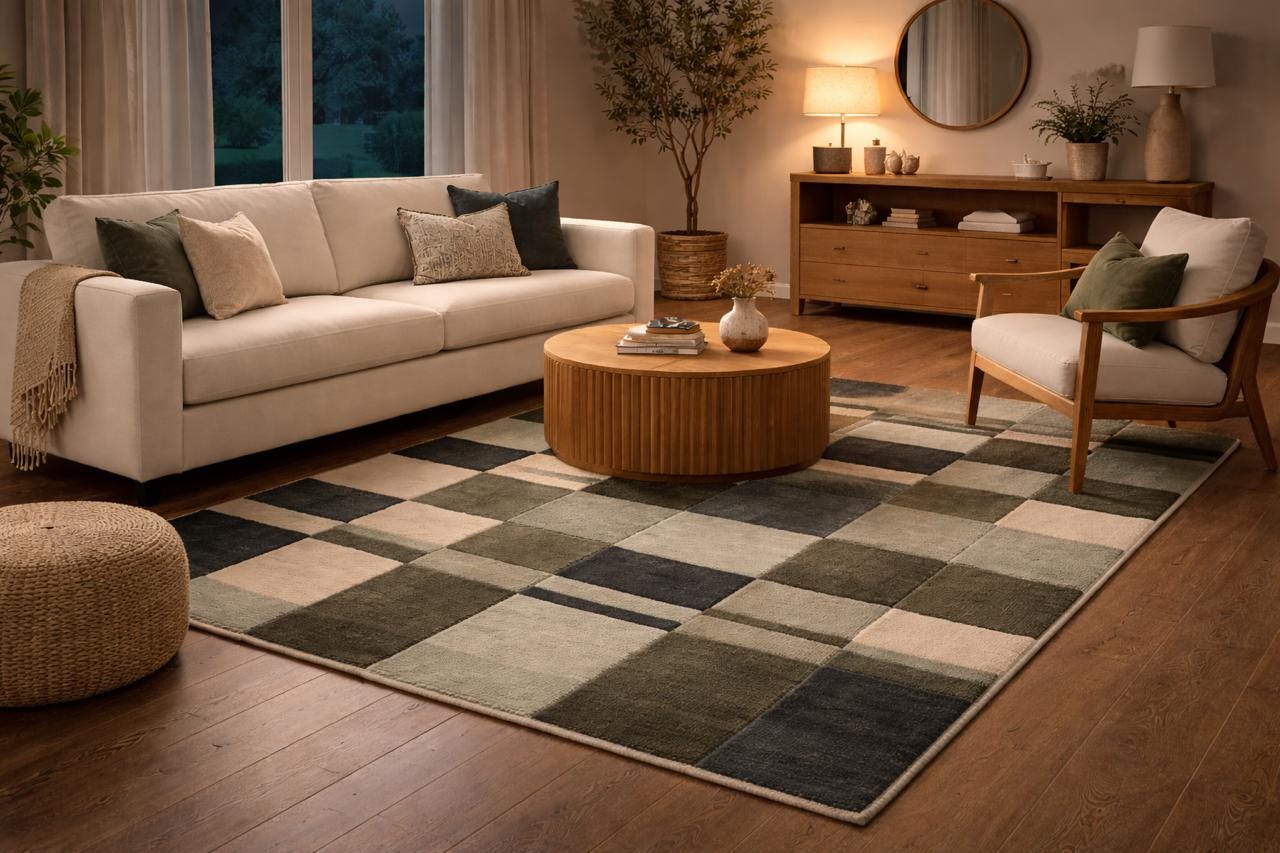 Introduce refined elegance into your home with this luxury handloom patchwork rug, where artisanal craftsmanship meets contemporary design. Carefully woven by skilled artisans, each rug showcases a striking geometric composition in rich, earthy tones—creating a bold yet sophisticated foundation for your space. Featuring a bold geometric block pattern in warm tones, this rug brings character to any room while standing up to heavy footfall and daily use.