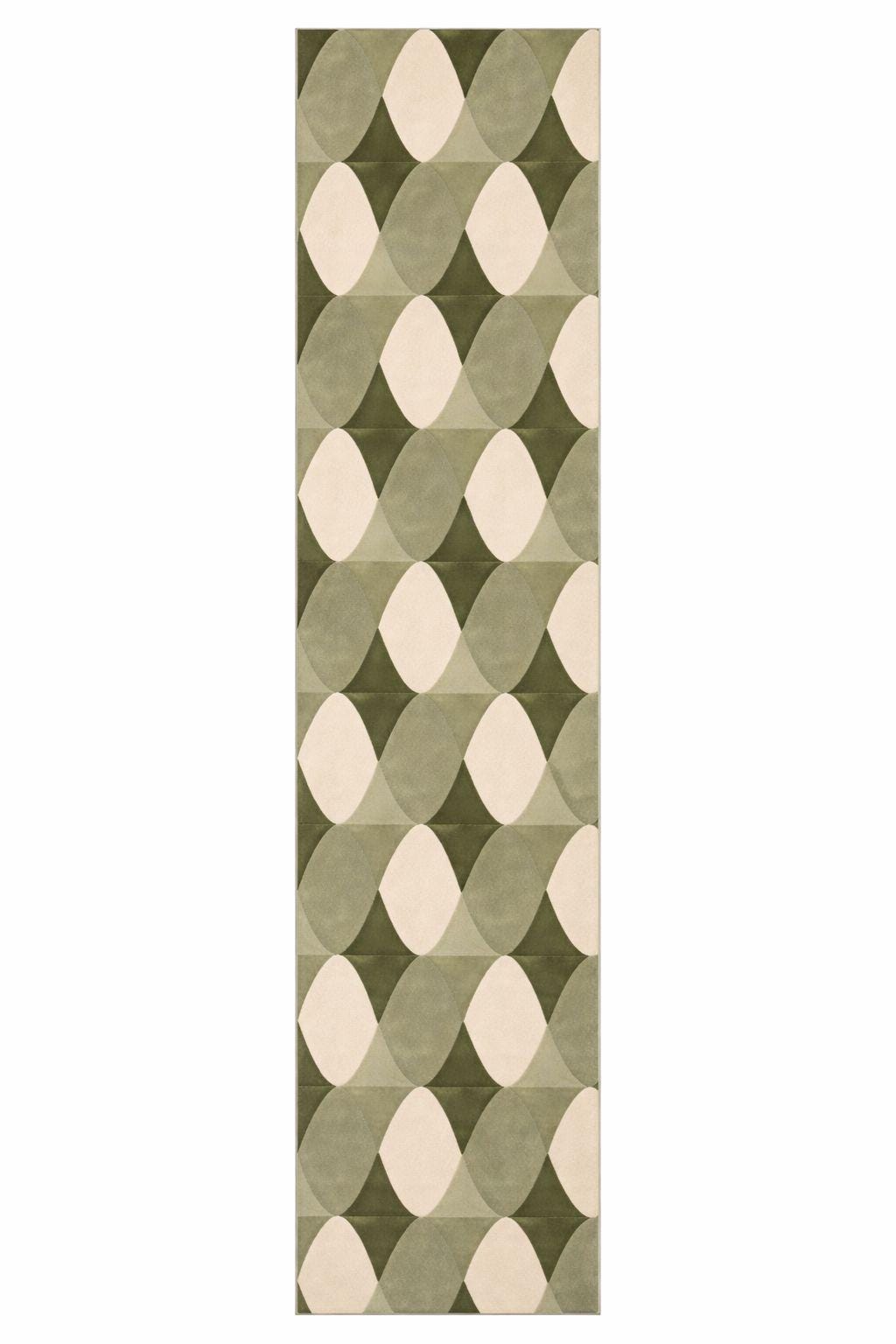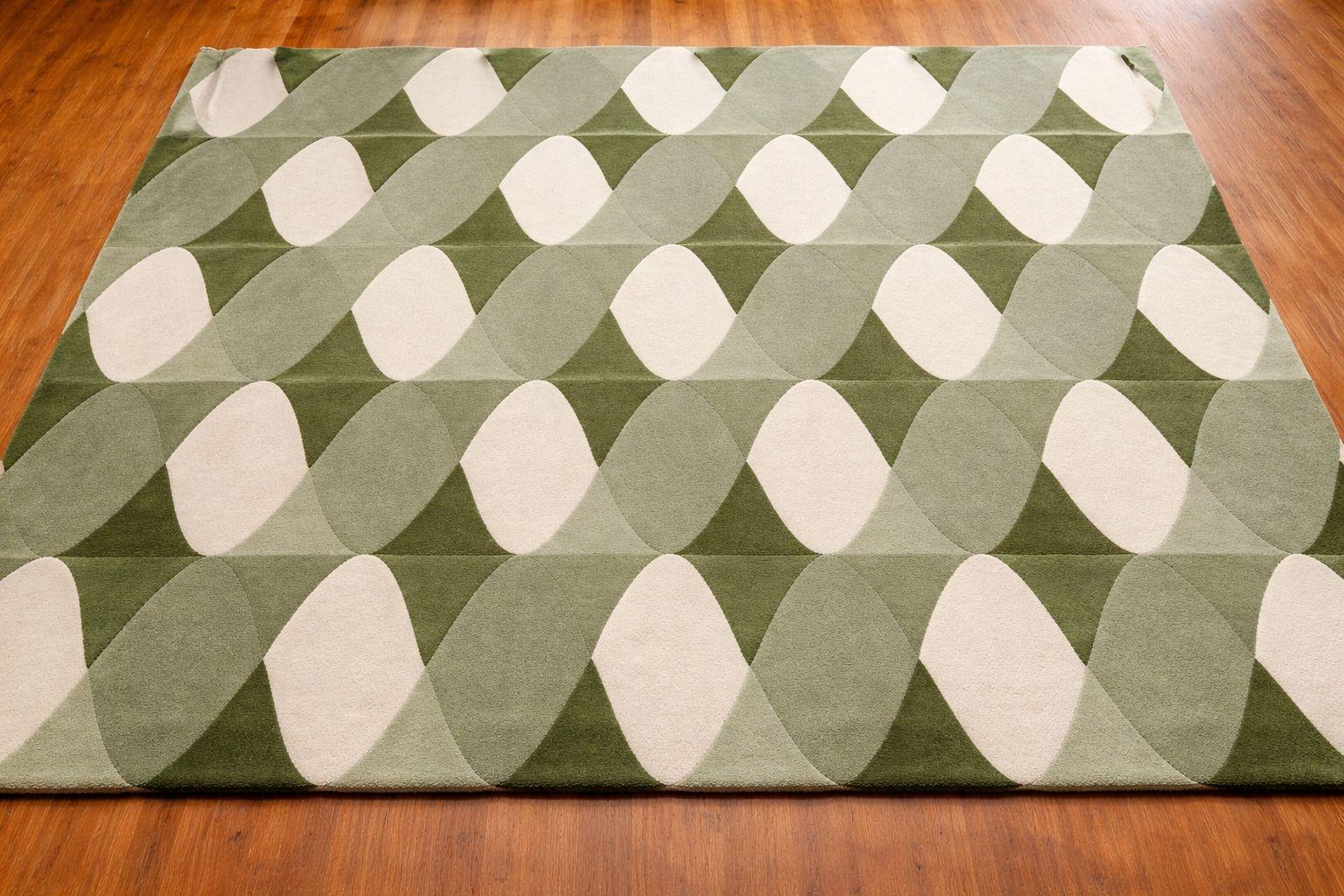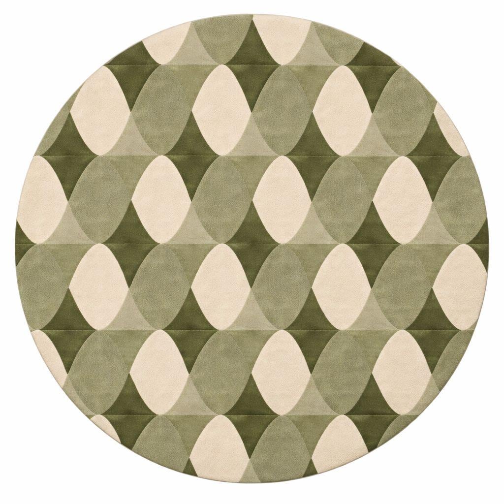 Bring timeless retro charm into your space with this 70s-inspired Mid Century Modern geometric rug, featuring a soothing palette of olive green, sage, and cream tones. The repeating abstract oval pattern creates a sense of rhythm and movement, making it a perfect statement piece for both modern and vintage interiors.