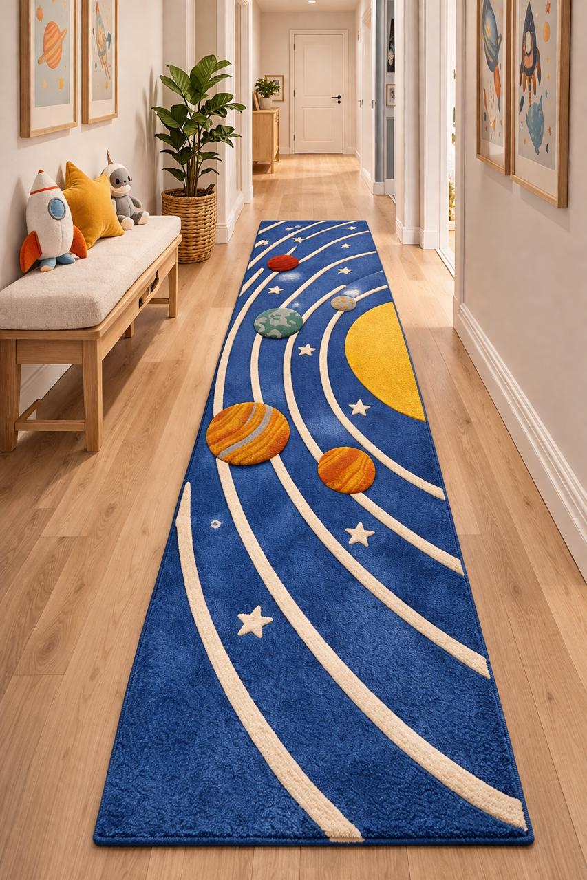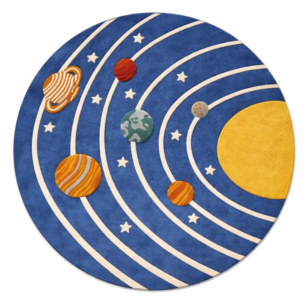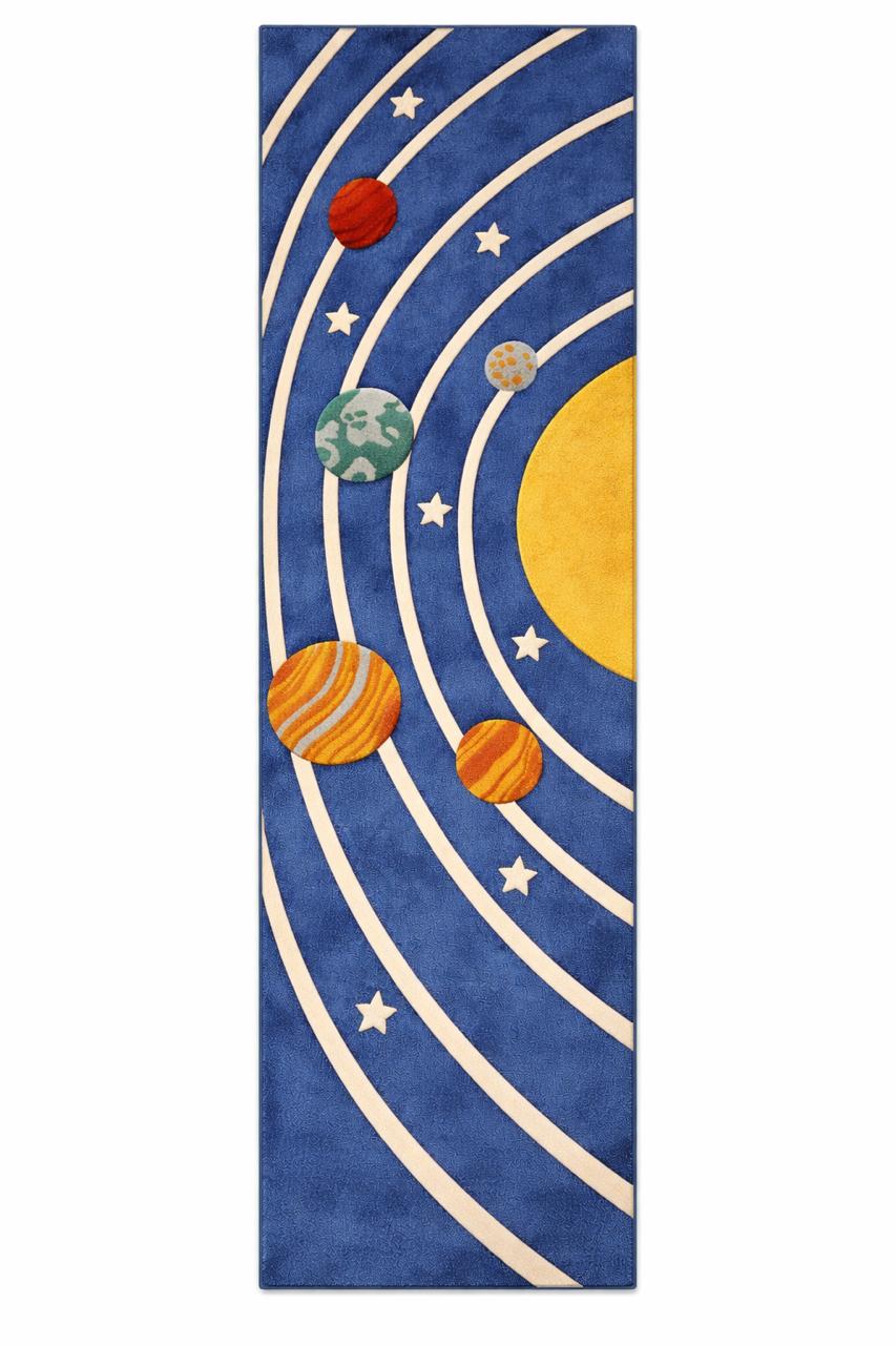 Turn your child’s room into a universe of imagination with this hand-tufted solar system rug Designed with vibrant planets, orbit lines, and a bold cosmic background, this rug is both playful and educational—perfect for curious little explorers.