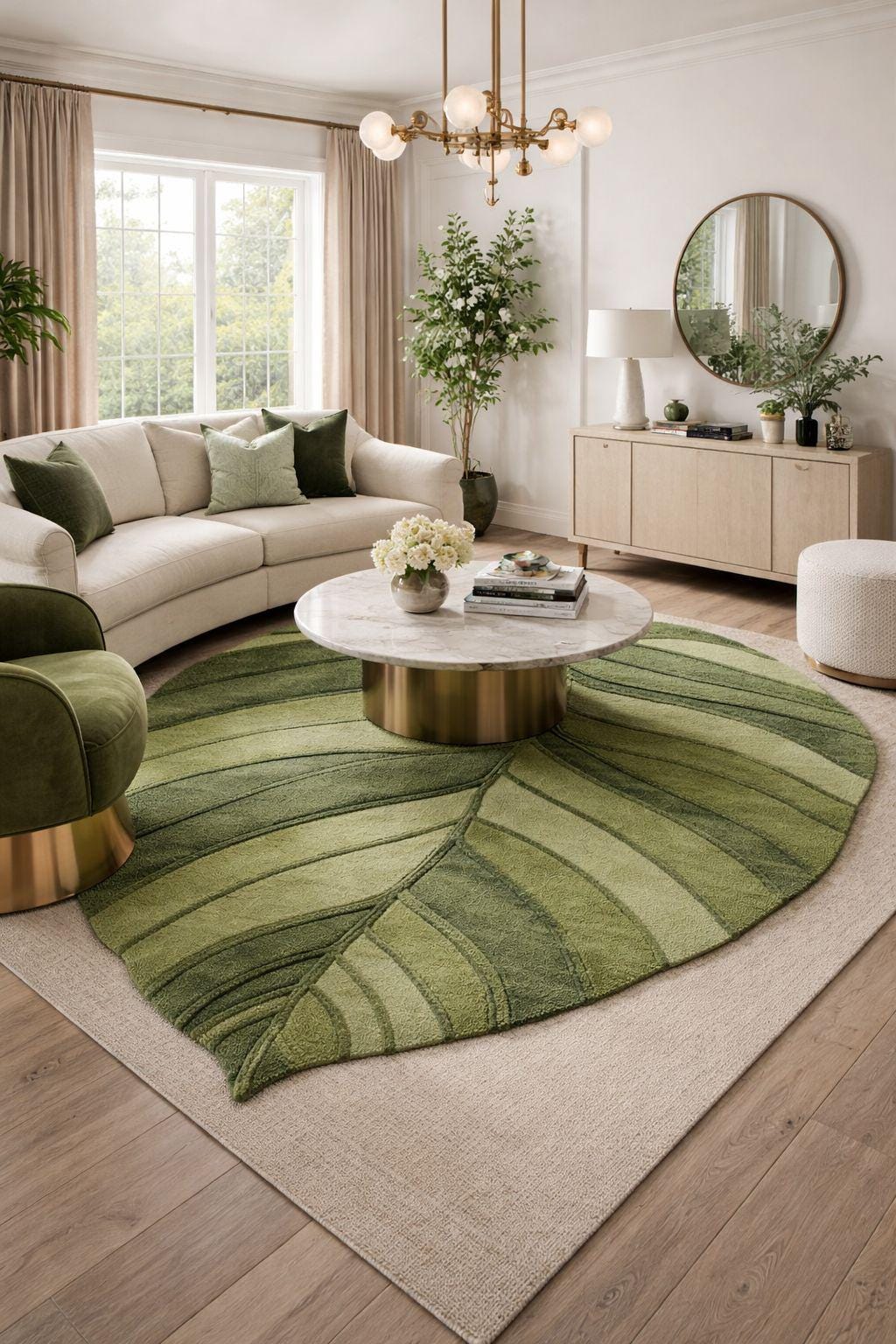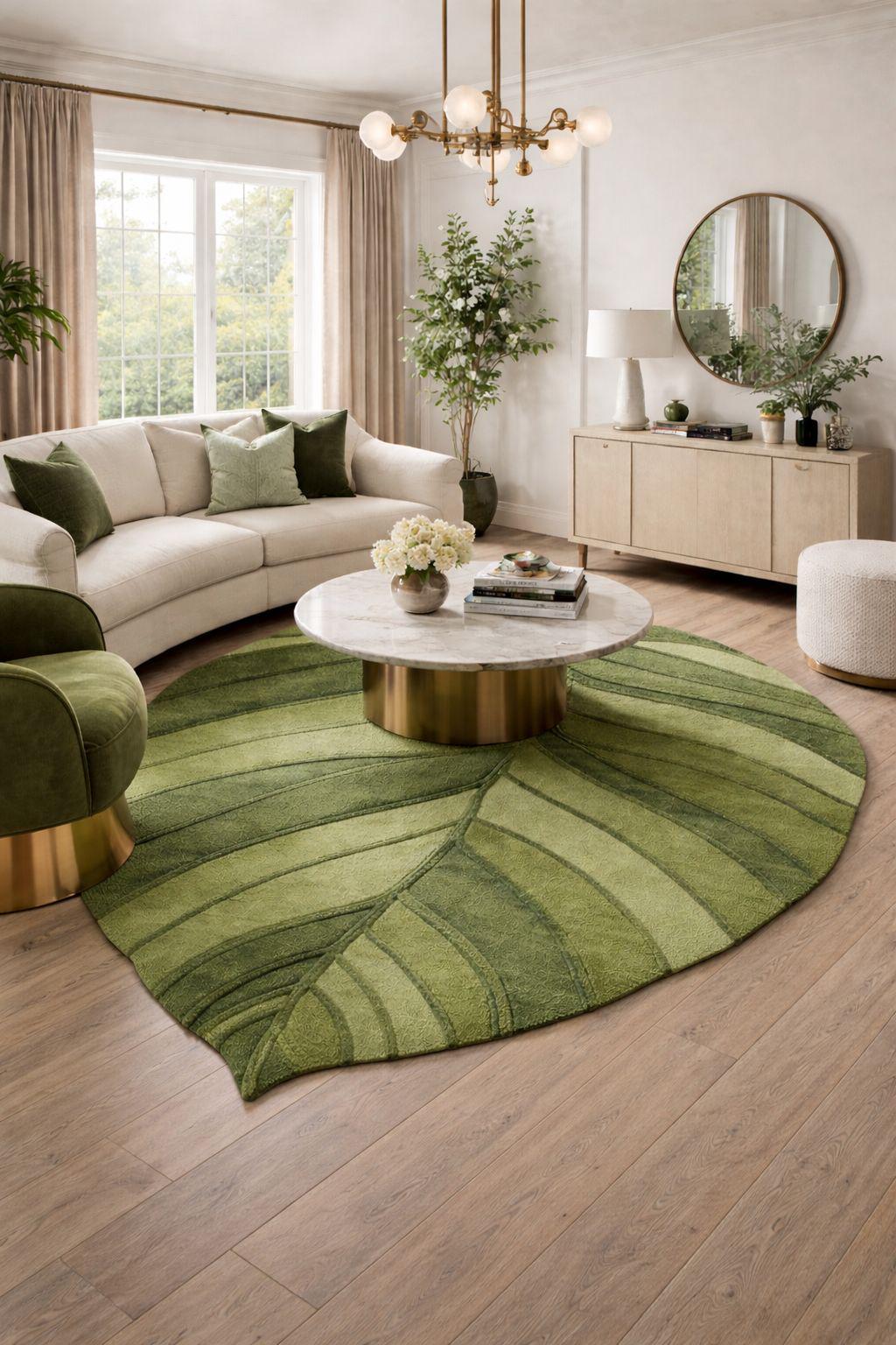 Bring the calming beauty of nature into your home with this handmade leaf-shaped tufted rug. Designed with rich green tones and detailed vein patterns, this piece mimics the elegance of a real leaf, adding a fresh, organic touch to any space.