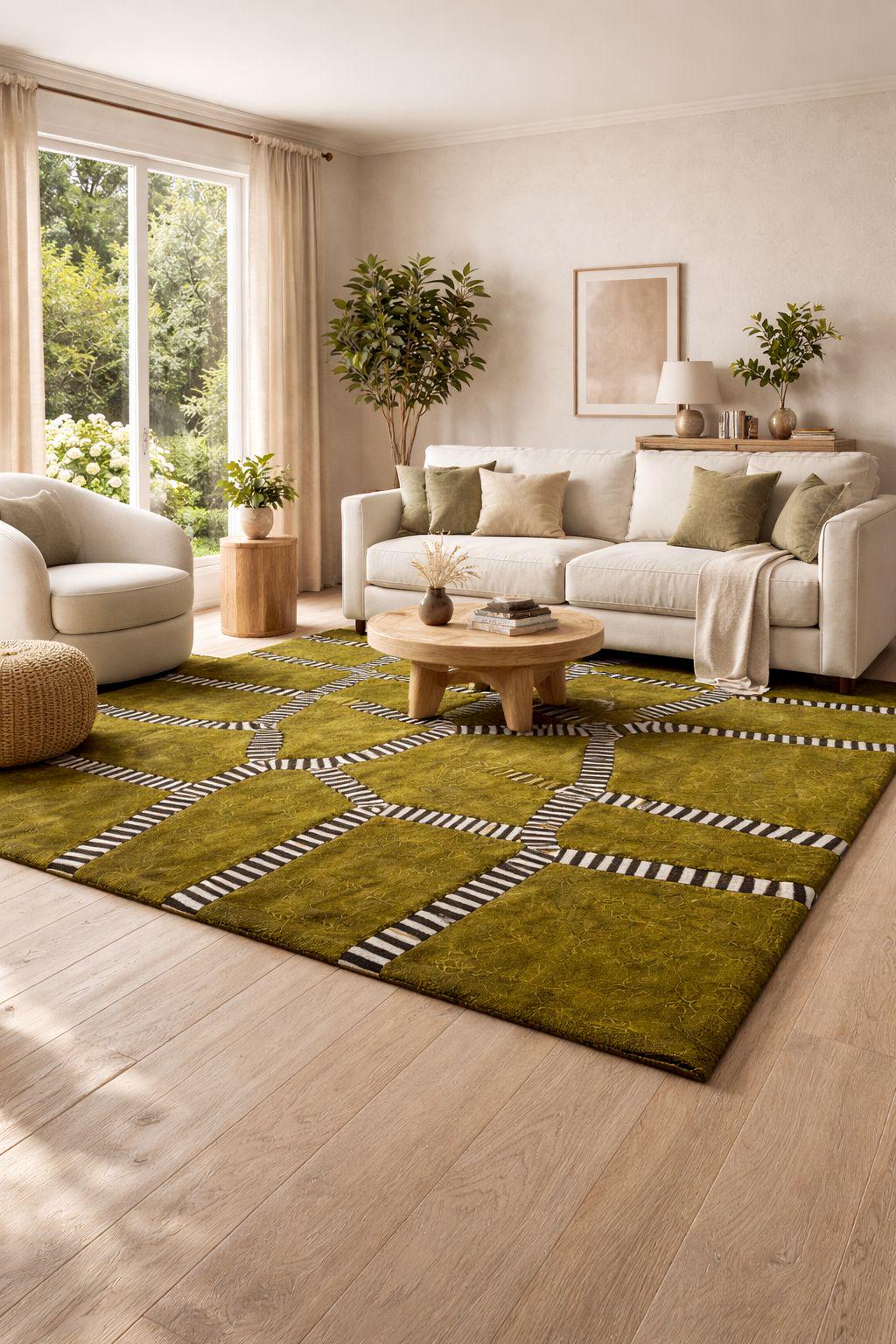 hand tufted rug, abstract rug, green rug, modern rug, geometric rug, wool rug, contemporary carpet, handmade rug, area rug, designer rug, statement rug, custom rug, luxury rug
