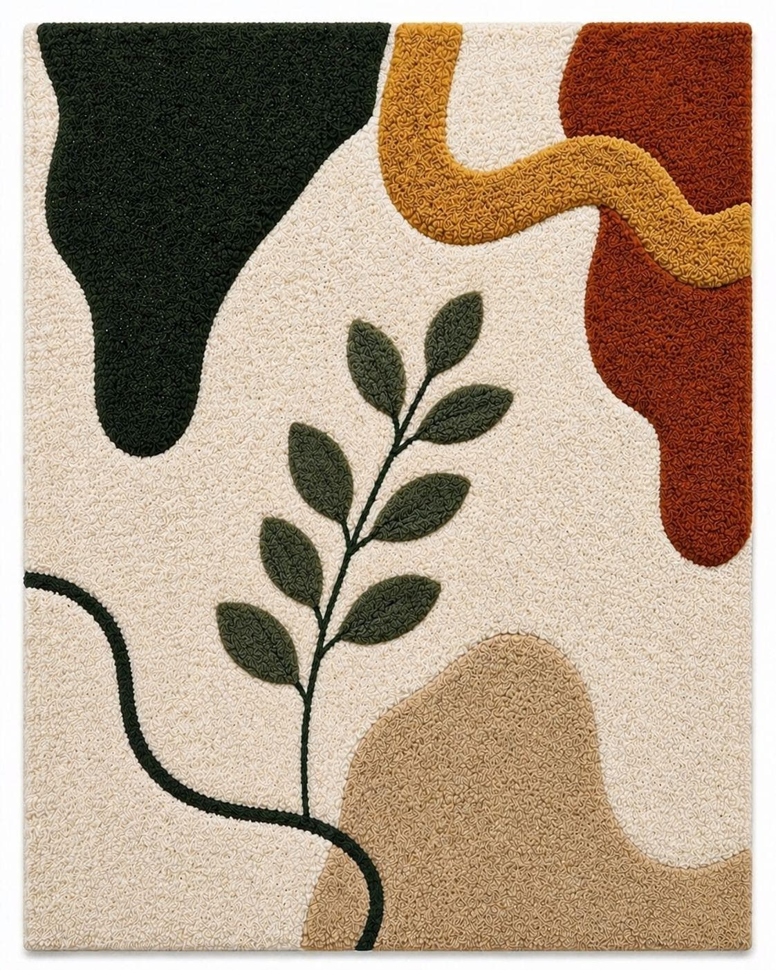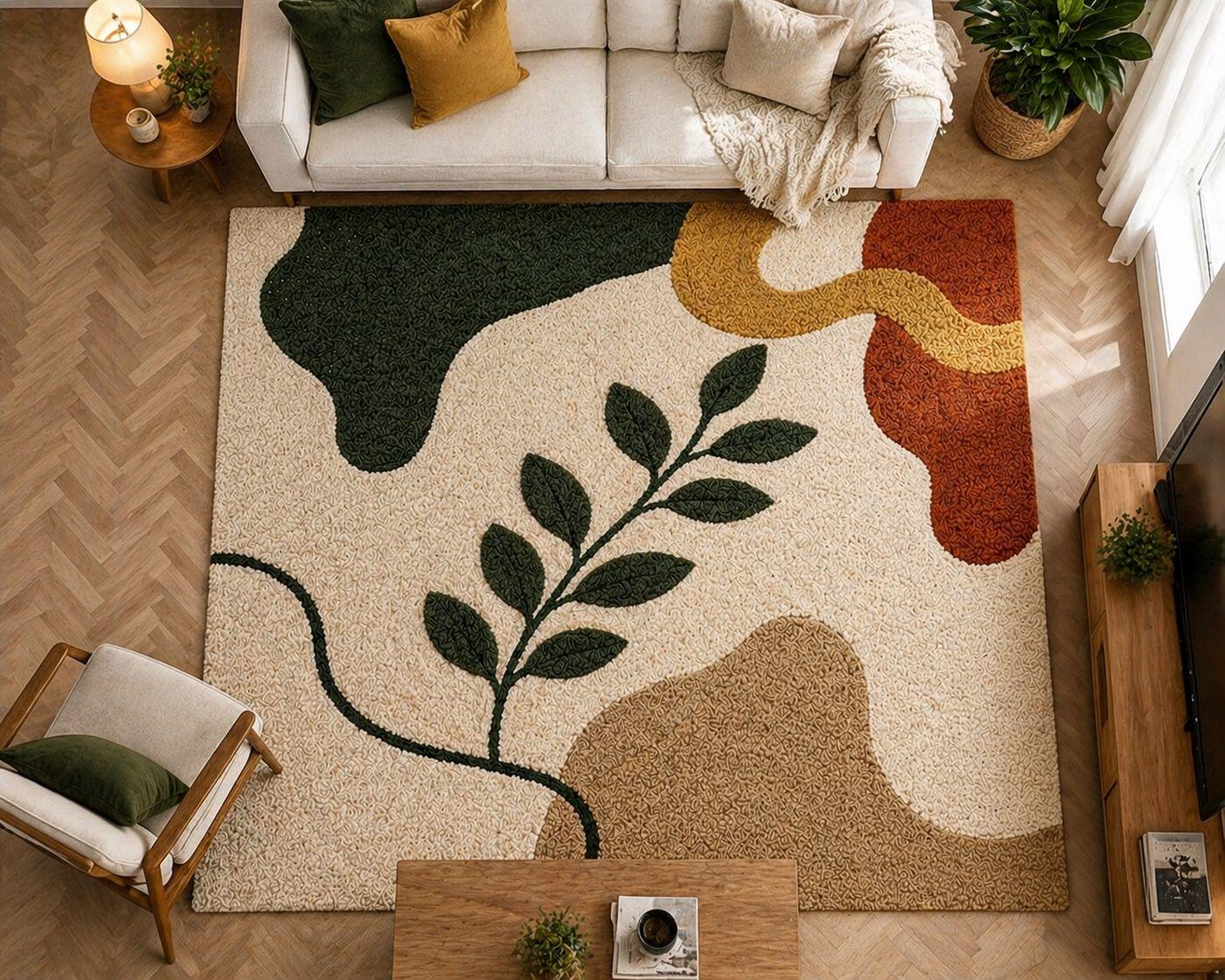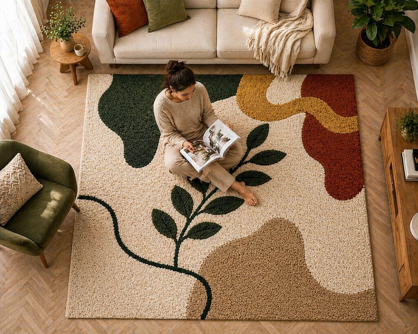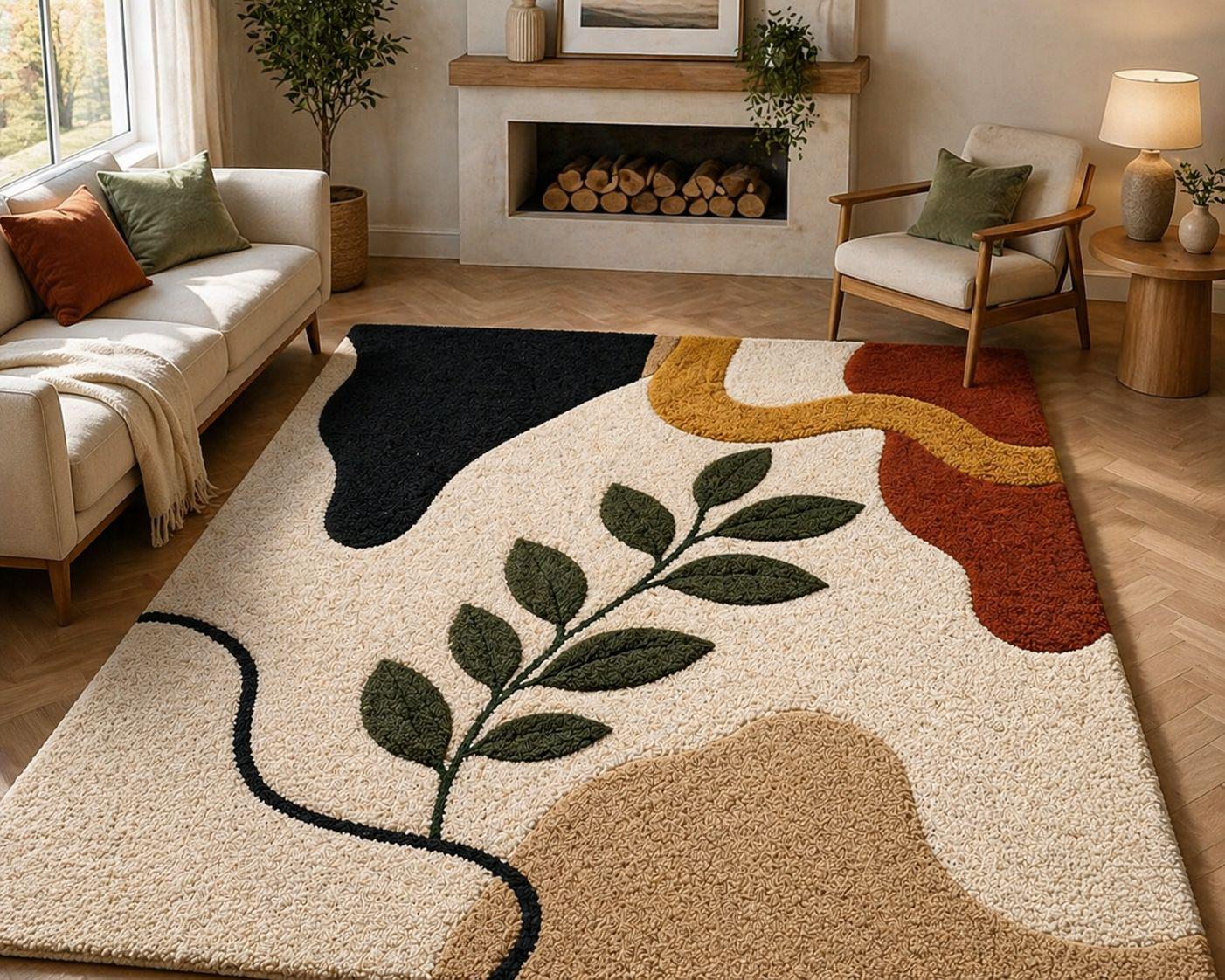 The harmonious palette of warm terracotta, soft beige, creamy ivory, and muted ochre reflects nature’s earthy elegance—perfectly aligned with today’s high-end interior trends. Each form is thoughtfully layered and hand-carved, creating a subtle high-low texture that adds depth, dimension, and a tactile richness underfoot.